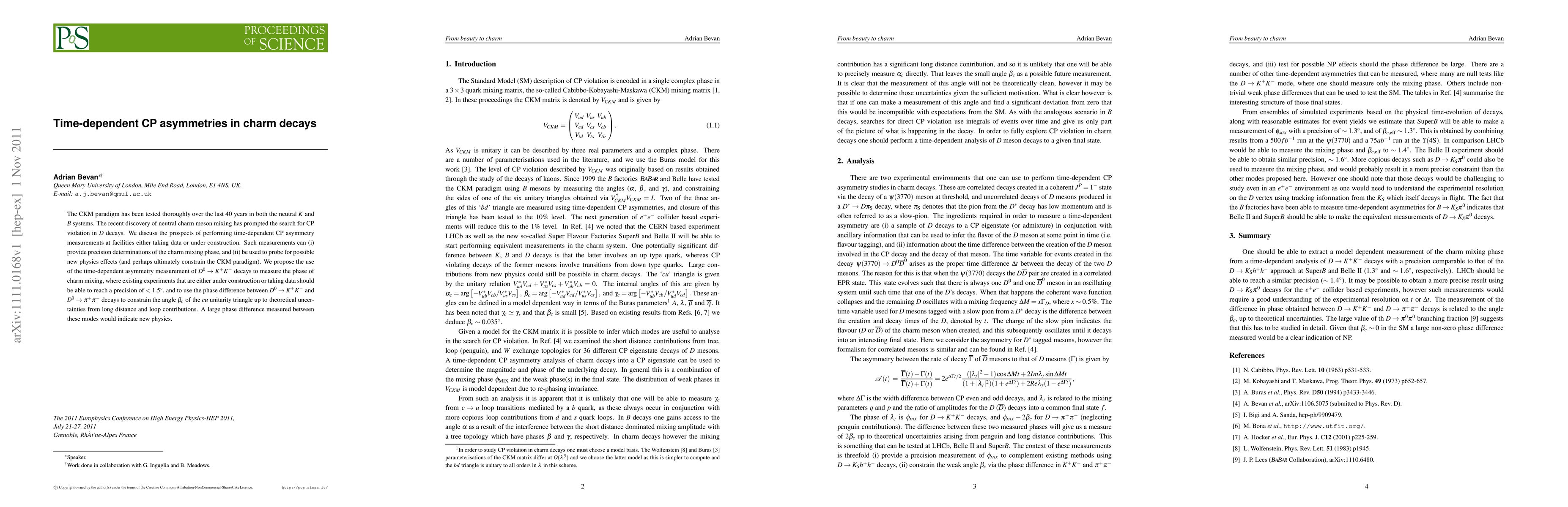Researchers propose a new experiment to measure time-dependent CP asymmetries in charm decays, which could provide precision determinations of the charm mixing phase and constrain the CKM paradigm.