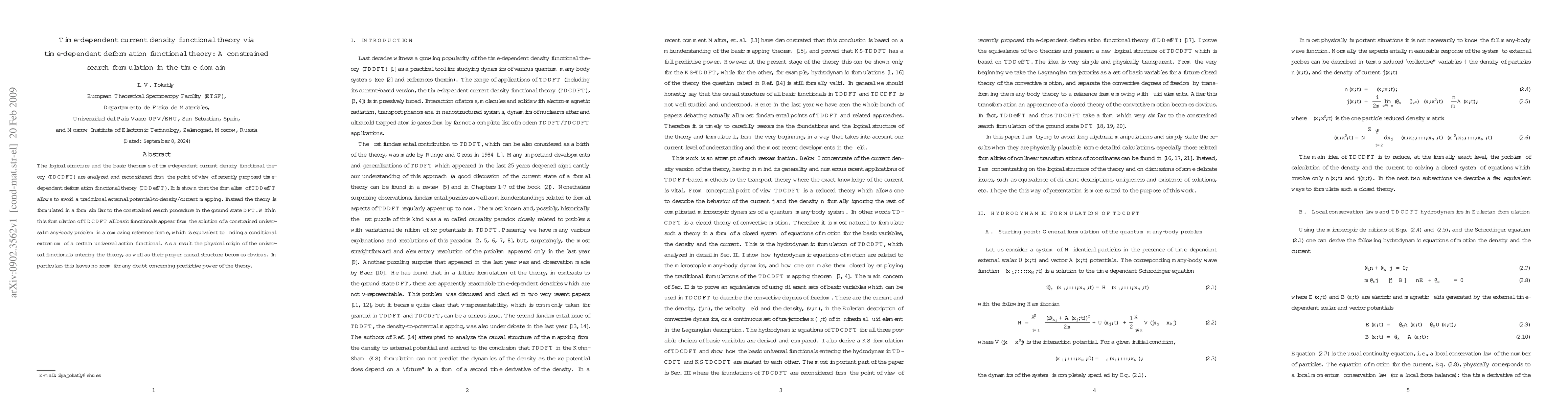 This paper reformulates time-dependent current density functional theory (TDCDFT) using time-dependent deformation functional theory (TDDefFT), avoiding traditional external potential mappings. It presents a constrained search formulation that reveals the physical origin and causal structure of the universal functionals, ensuring the theory's predictive power.
