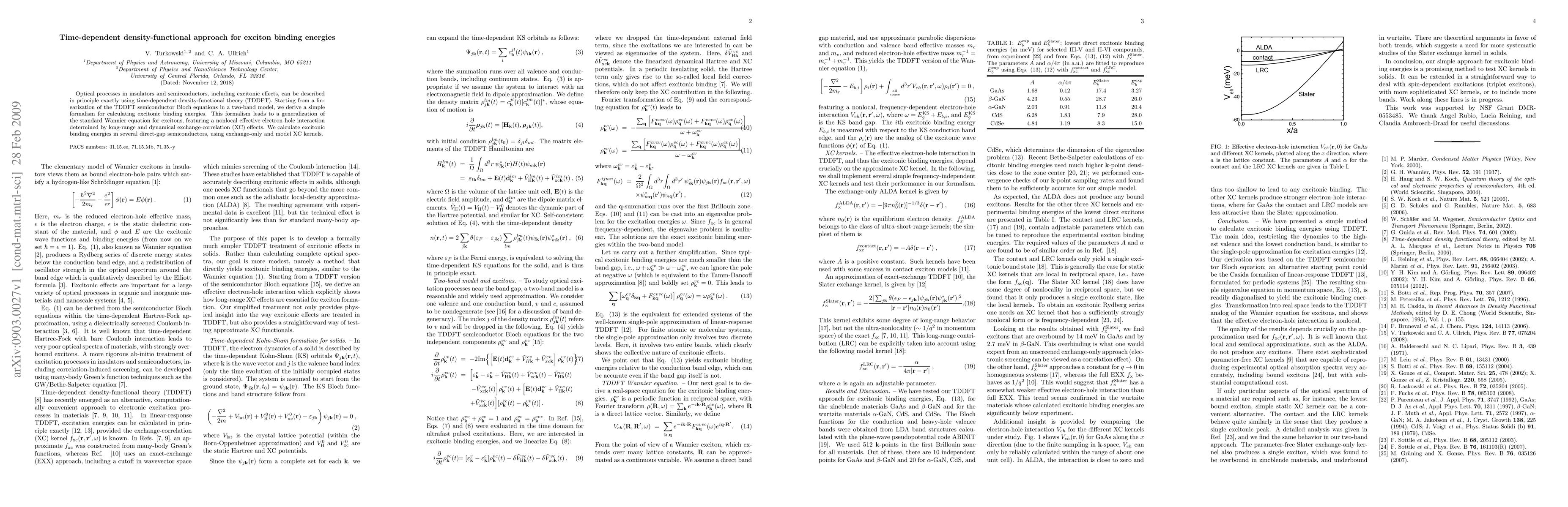 This paper develops a time-dependent density-functional theory (TDDFT) approach to calculate excitonic binding energies, generalizing the Wannier equation to include nonlocal interactions influenced by long-range and dynamic exchange-correlation effects. The method is applied to several direct-gap semiconductors to determine exciton binding energies.