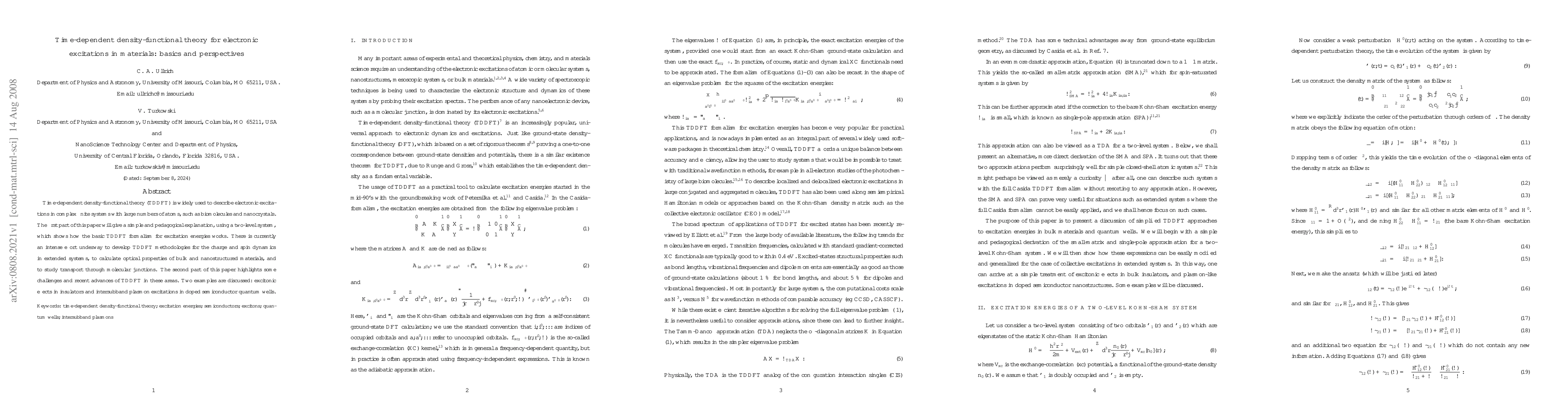 This paper provides a pedagogical introduction to time-dependent density-functional theory (TDDFT) for electronic excitations, using a two-level system to illustrate its basic principles. It also discusses recent advances and challenges in TDDFT applications for charge and spin dynamics, optical properties, and transport in extended systems, with examples of excitonic effects and intersubband plasmon excitations.