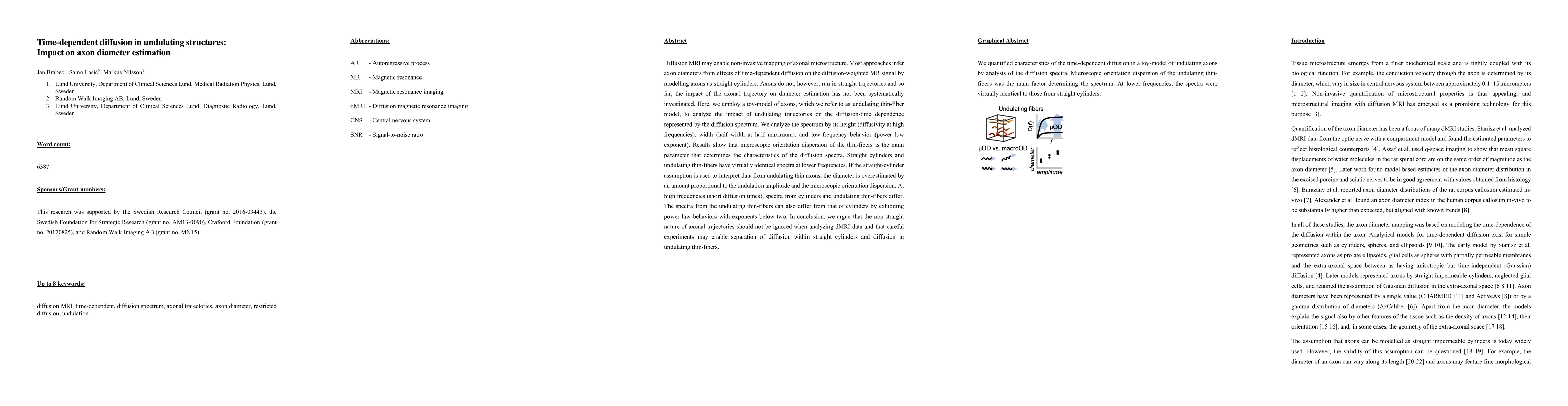 Diffusion MRI may enable non-invasive mapping of axonal microstructure. Most approaches infer axon diameters from effects of time-dependent diffusion on the diffusion-weighted MR signal by modelling axons as straight cylinders. Axons do not, however, run in straight trajectories and so far, the impact of the axonal trajectory on diameter estimation has not been systematically investigated. Here, we employ a toy-model of axons, which we refer to as undulating thin-fiber model, to analyze the impact of undulating trajectories on the diffusion-time dependence represented by the diffusion spectrum. We analyze the spectrum by its height (diffusivity at high frequencies), width (half width at half maximum), and low-frequency behavior (power law exponent). Results show that microscopic orientation dispersion of the thin-fibers is the main parameter that determines the characteristics of the diffusion spectra. Straight cylinders and undulating thin-fibers have virtually identical spectra at lower frequencies. If the straight-cylinder assumption is used to interpret data from undulating thin axons, the diameter is overestimated by an amount proportional to the undulation amplitude and the microscopic orientation dispersion. At high frequencies (short diffusion times), spectra from cylinders and undulating thin-fibers differ. The spectra from the undulating thin-fibers can also differ from that of cylinders by exhibiting power law behaviors with exponents below two. In conclusion, we argue that the non-straight nature of axonal trajectories should not be ignored when analyzing dMRI data and that careful experiments may enable separation of diffusion within straight cylinders and diffusion in undulating thin-fibers.