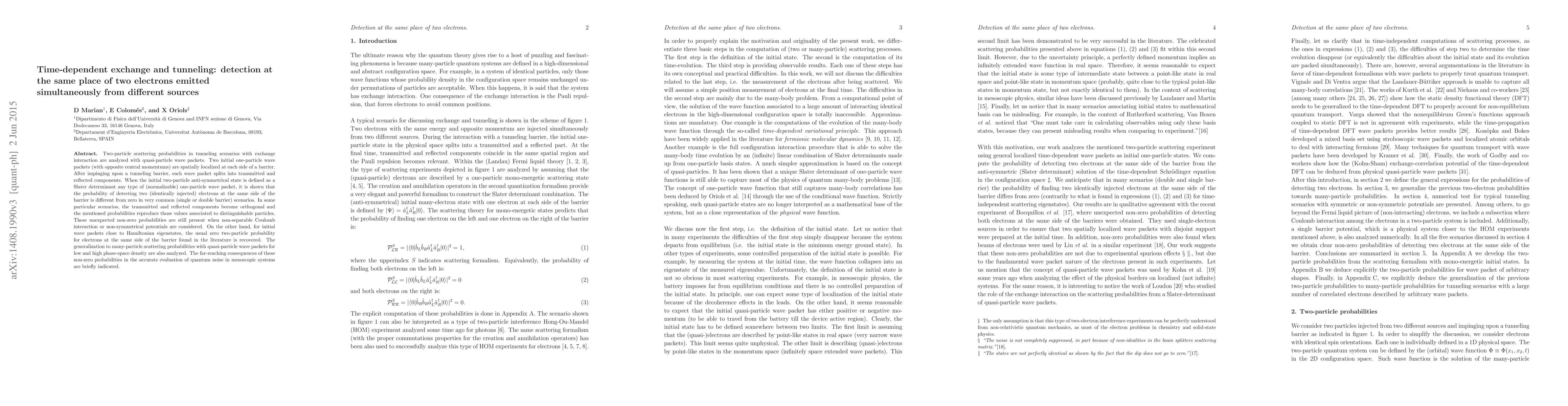 Research shows that in certain tunneling scenarios, two electrons emitted simultaneously from different sources can have a non-zero probability of being detected at the same side of a barrier, even when they are initially anti-symmetrical states.