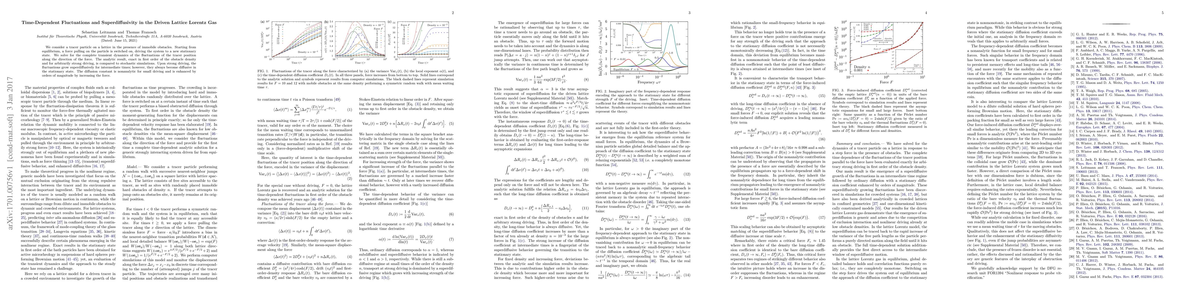 We consider a tracer particle on a lattice in the presence of immobile obstacles. Starting from equilibrium, a force pulling on the particle is switched on, driving the system to a new stationary state. We solve for the complete transient dynamics of the fluctuations of the tracer position along the direction of the force. The analytic result, exact in first order of the obstacle density and for arbitrarily strong driving, is compared to stochastic simulations. Upon strong driving, the fluctuations grow superdiffusively for intermediate times; however, they always become diffusive in the stationary state. The diffusion constant is nonanalytic for small driving and is enhanced by orders of magnitude by increasing the force.