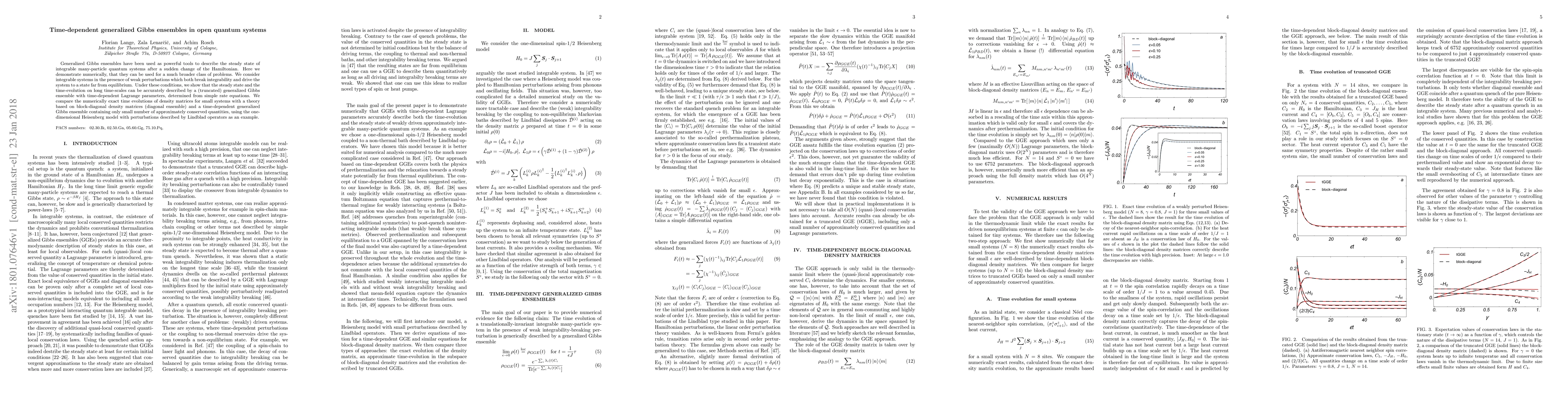 This paper demonstrates that generalized Gibbs ensembles can describe the steady state and long-time evolution of integrable quantum systems under weak perturbations, using time-dependent Lagrange parameters. The study compares numerical results with theoretical models for the one-dimensional Heisenberg model, showing the ensemble's effectiveness in non-equilibrium conditions.