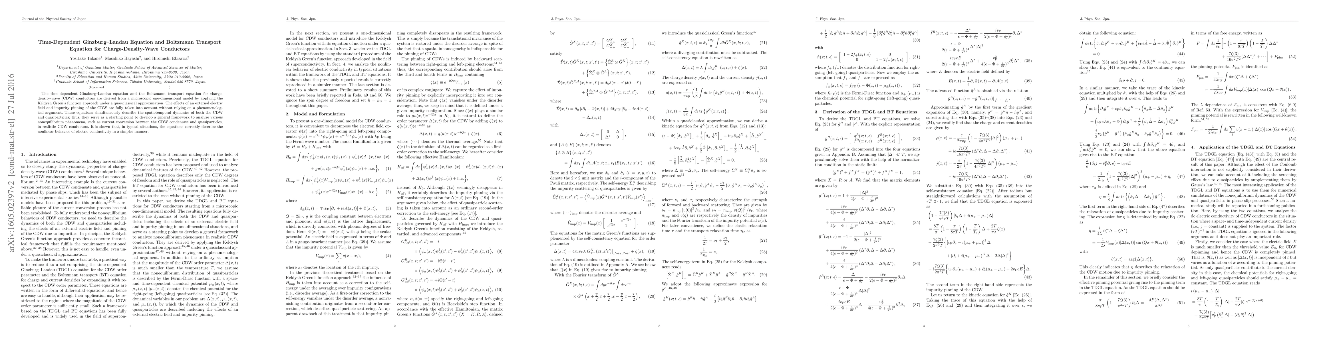 The time-dependent Ginzburg-Landau equation and the Boltzmann transport equation for one-dimensional charge-density-wave (CDW) conductors are derived from a microscopic model by applying the Keldysh Green's function approach under a quasiclassical approximation. The effects of external electric field and impurity pinning of the CDW are fully taken into account without relying on a phenomenological argument. These equations simultaneously describe spatiotemporal dynamics of both the CDW and quasiparticles, so they serve as a powerful tool to analyze various nonequilibrium phenomena, such as the current conversion between the CDW condensate and quasiparticles mediated by phase slips. It is shown that, in typical situations, the equations correctly describe the nonlinear behavior of electric conductivity in a simpler manner.