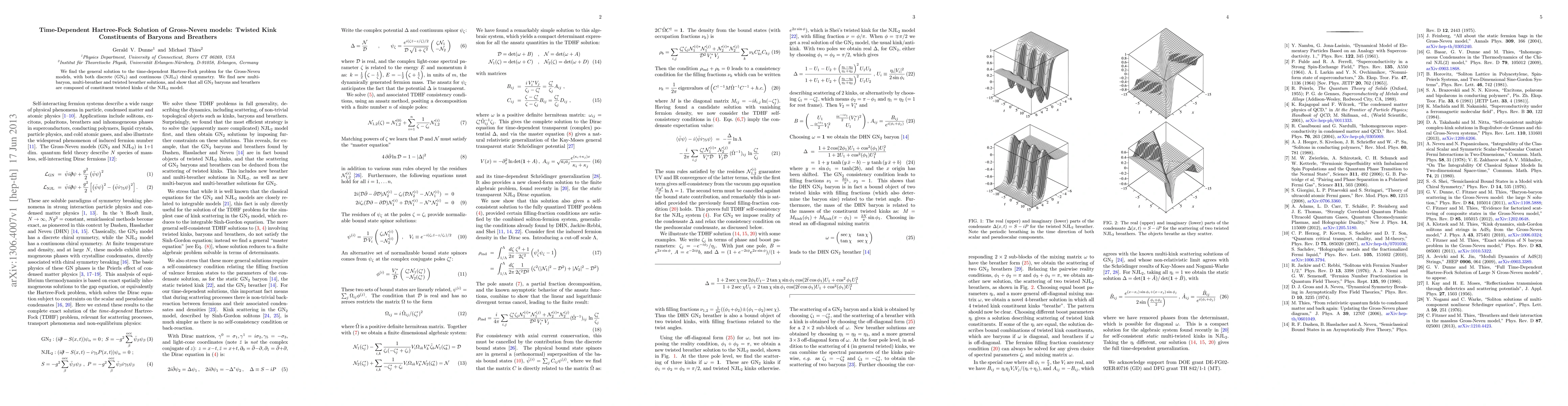 This paper presents the general time-dependent Hartree-Fock solution for Gross-Neveu models, revealing new multi-baryon, multi-breather, and twisted breather solutions. It demonstrates that GN2 baryons and breathers are made up of constituent twisted kinks from the NJL2 model.