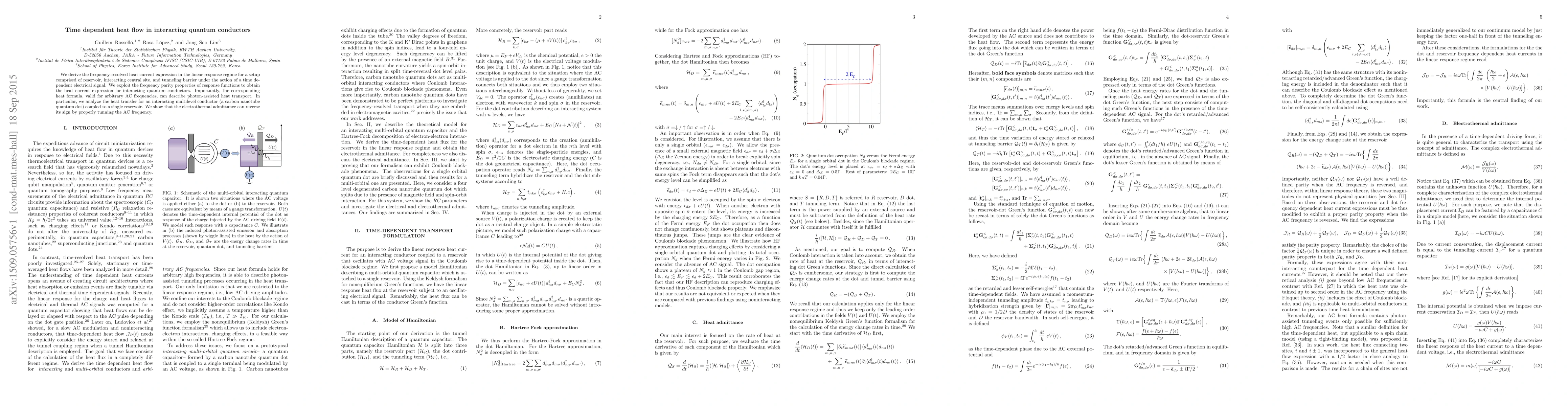This research derives a heat current expression for interacting quantum conductors under time-dependent electrical signals, revealing that photon-assisted heat transport can be described. The study focuses on an interacting multilevel conductor, like a carbon nanotube quantum dot, coupled to a single reservoir, demonstrating that electrothermal admittance can change its sign by adjusting the AC frequency.