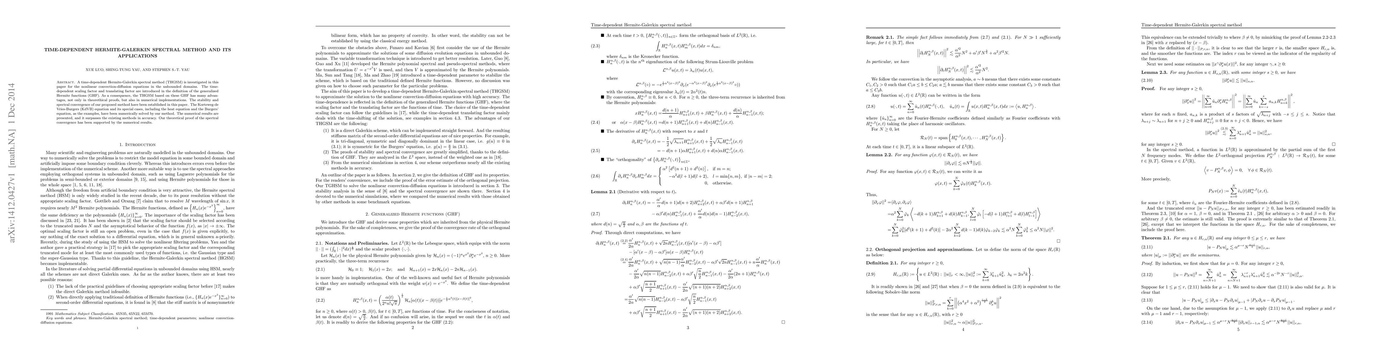 This paper introduces a time-dependent Hermite-Galerkin spectral method for solving nonlinear convection-diffusion equations in unbounded domains. The method, based on generalized Hermite functions with scaling and translating factors, demonstrates stability and spectral convergence, outperforming existing methods as shown through numerical solutions of the KdVB, heat, and Burgers' equations.