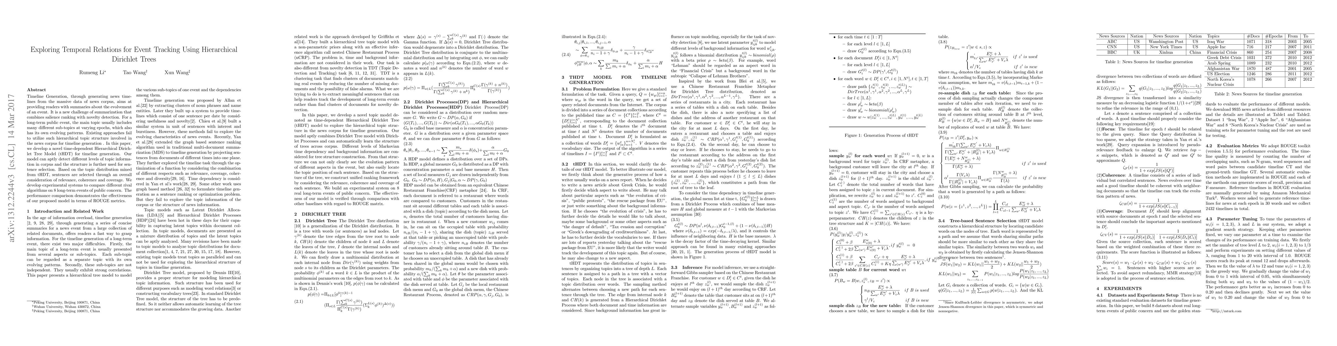 Timeline Generation aims at summarizing news from different epochs and telling readers how an event evolves. It is a new challenge that combines salience ranking with novelty detection. For long-term public events, the main topic usually includes various aspects across different epochs and each aspect has its own evolving pattern. Existing approaches neglect such hierarchical topic structure involved in the news corpus in timeline generation. In this paper, we develop a novel time-dependent Hierarchical Dirichlet Model (HDM) for timeline generation. Our model can aptly detect different levels of topic information across corpus and such structure is further used for sentence selection. Based on the topic mined fro HDM, sentences are selected by considering different aspects such as relevance, coherence and coverage. We develop experimental systems to evaluate 8 long-term events that public concern. Performance comparison between different systems demonstrates the effectiveness of our model in terms of ROUGE metrics.