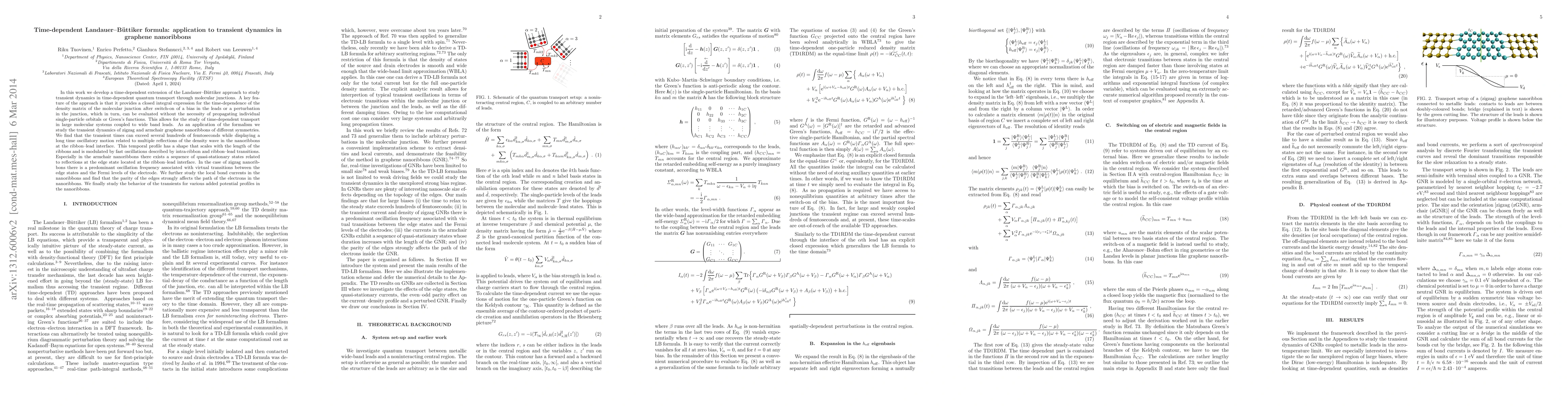 This paper extends the Landauer-Büttiker formalism to analyze transient dynamics in graphene nanoribbons, revealing long transient times and oscillatory behavior influenced by edge states and gate potentials. The study highlights the impact of ribbon symmetry on electron paths and transient profiles.