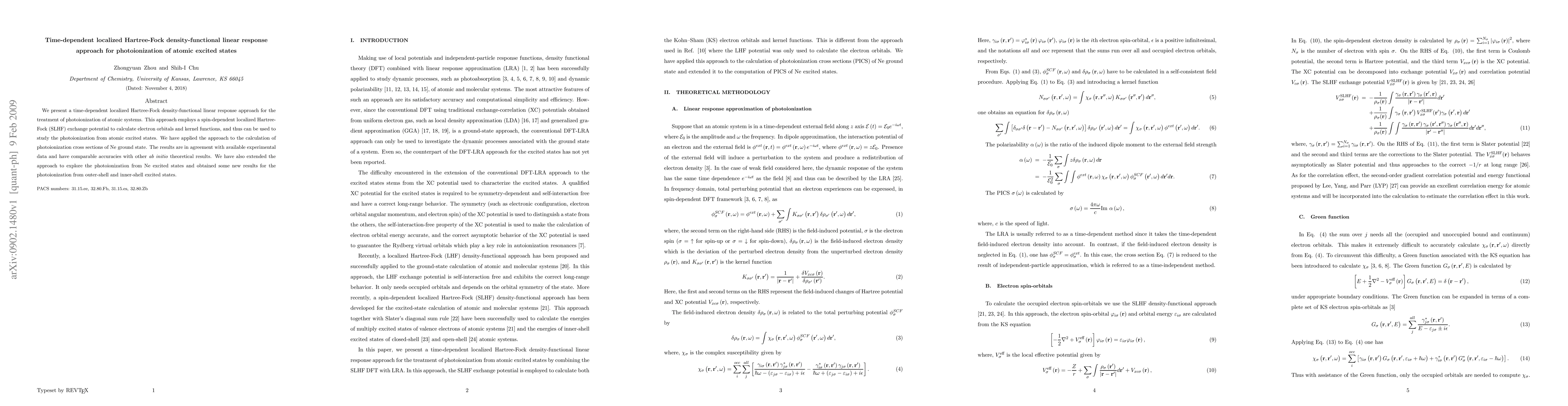 This paper introduces a time-dependent localized Hartree-Fock density-functional linear response approach for studying photoionization in atomic systems, specifically applied to Ne. The method uses a spin-dependent localized Hartree-Fock exchange potential and yields results that match experimental data and other theoretical calculations.