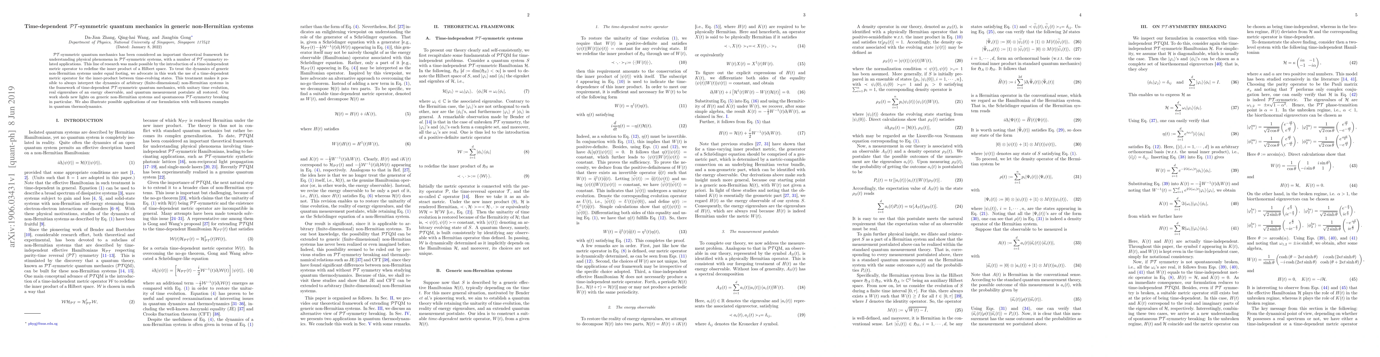 This paper proposes a time-dependent $\mathcal{PT}$-symmetric quantum mechanics framework to analyze dynamics in generic non-Hermitian systems, ensuring unitary time evolution and real energy eigenvalues, and highlights applications in quantum thermodynamics. The approach restores the quantum measurement postulate and sheds new light on spontaneous $\mathcal{PT}$-symmetry breaking.