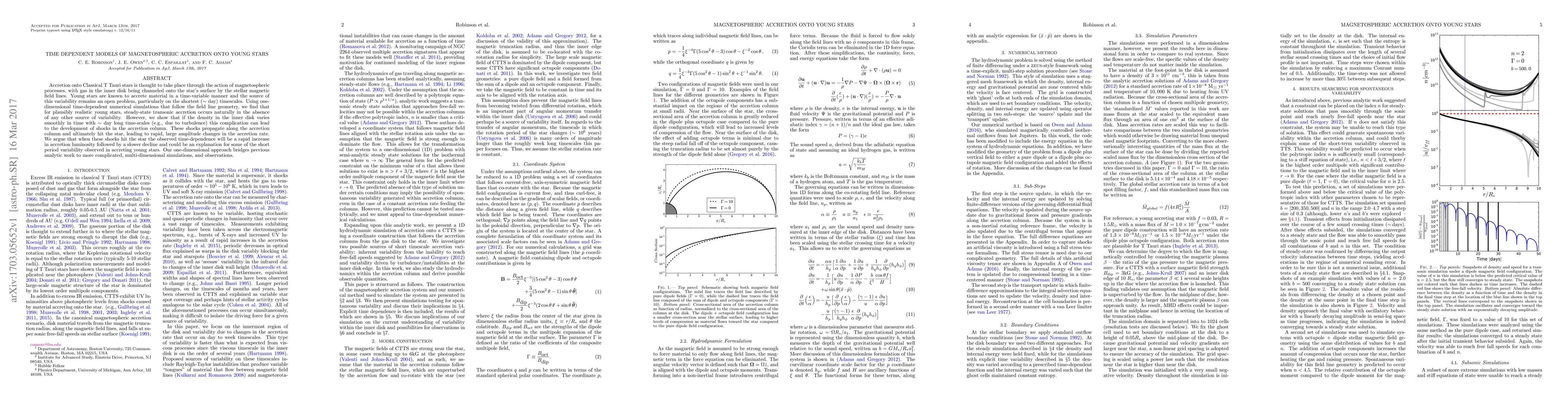 This paper investigates time-dependent models of magnetospheric accretion onto young stars, revealing that naturally occurring steady-state transonic accretion can be disrupted by inner disk density variations, leading to shock development and significant changes in accretion rate. These shocks may cause rapid increases in accretion luminosity, potentially explaining short-term variability in accreting young stars.