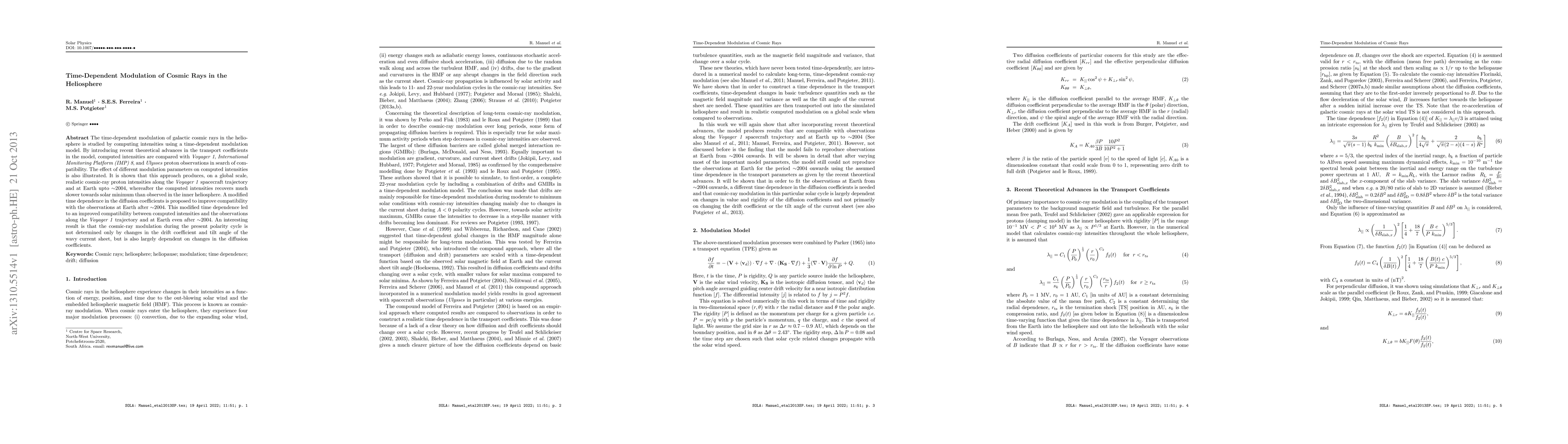 The paper introduces a modified time dependence function for the drift coefficient and adjusts the time dependence in diffusion coefficients, leading to improved compatibility between computed intensities and observations at Earth after ~2004.
