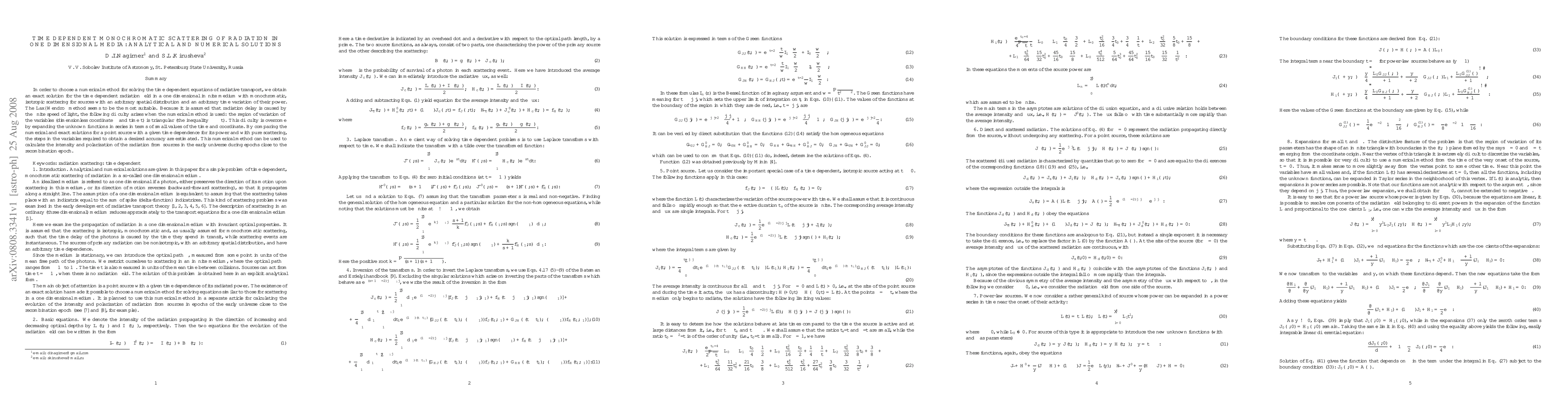 This paper provides an exact analytical solution and evaluates the Lax-Wendroff method for solving the time-dependent radiative transport equations in one-dimensional, infinite media with monochromatic scattering. The method is shown to accurately model the radiation intensity and polarization from early universe sources.