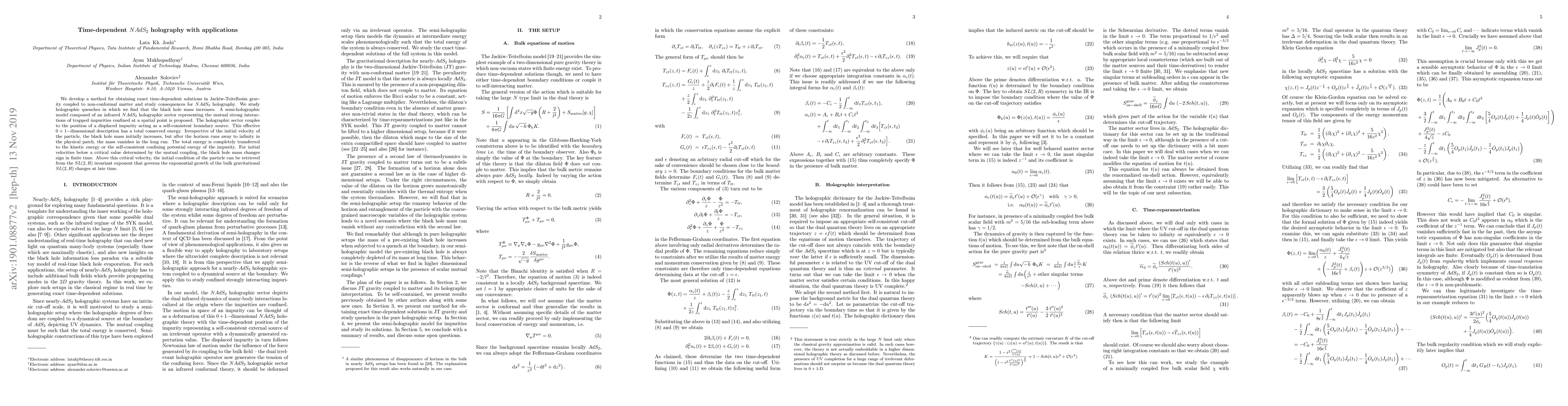 We develop a method for obtaining exact time-dependent solutions in Jackiw-Teitelboim gravity coupled to non-conformal matter and study consequences for $NAdS_2$ holography. We study holographic quenches in which we find that the black hole mass increases. A semi-holographic model composed of an infrared $NAdS_2$ holographic sector representing the mutual strong interactions of trapped impurities confined at a spatial point is proposed. The holographic sector couples to the position of a displaced impurity acting as a self-consistent boundary source. This effective $0+1-$dimensional description has a total conserved energy. Irrespective of the initial velocity of the particle, the black hole mass initially increases, but after the horizon runs away to infinity in the physical patch, the mass vanishes in the long run. The total energy is completely transferred to the kinetic energy or the self-consistent confining potential energy of the impurity. For initial velocities below a critical value determined by the mutual coupling, the black hole mass changes sign in finite time. Above this critical velocity, the initial condition of the particle can be retrieved from the $SL(2,R)$ invariant exponent that governs the exponential growth of the bulk gravitational $SL(2,R)$ charges at late time.