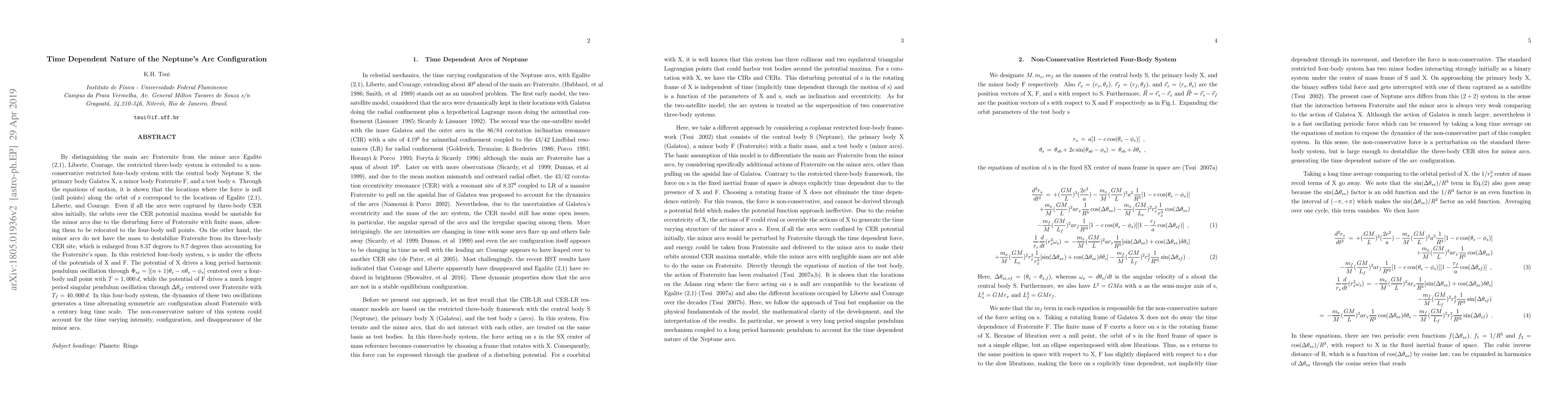 By distinguishing the main arc Fraternite from the minor arcs Egalite (2,1), Liberte, Courage, the restricted three-body system is extended to a non-conservative restricted four-body system with the central body Neptune S, the primary body Galatea X, a minor body Fraternite F, and a test body s. Through the equations of motion, it is shown that the locations where the force is null along the orbit of s correspond to the locations of Egalite (2,1), Liberte, and Courage. Even if all the arcs were captured by CER sites initially, the orbits over the CERs would be unstable for the minor arcs due to the disturbing force of Fraternite, allowing them to be relocated to the null points. On the other hand, the minor arcs do not have the mass to destabilize Fraternite from its CER site, which is enlarged from 8.37 degrees to 9.7 degrees thus accounting for the Fraternite's span. In this restricted four-body system, s is under the effects of the potentials of X and F. The potential of X drives a long period harmonic pendulum oscillation of $(n+1)\theta_{s}$ of the test body s with respect to $n\theta_{x}$ of X centered over a local CER site with period $T=1,000\,d$, while the potential of F drives an even longer period singular pendulum oscillation centered over Fraternite with period $T_{f}=40,000\,d$. It is shown that the null points are the turning points of the harmonic CER oscillation, and the non-conservative nature of this system could account for the time varying intensity, configuration, and disappearance of the minor arcs.