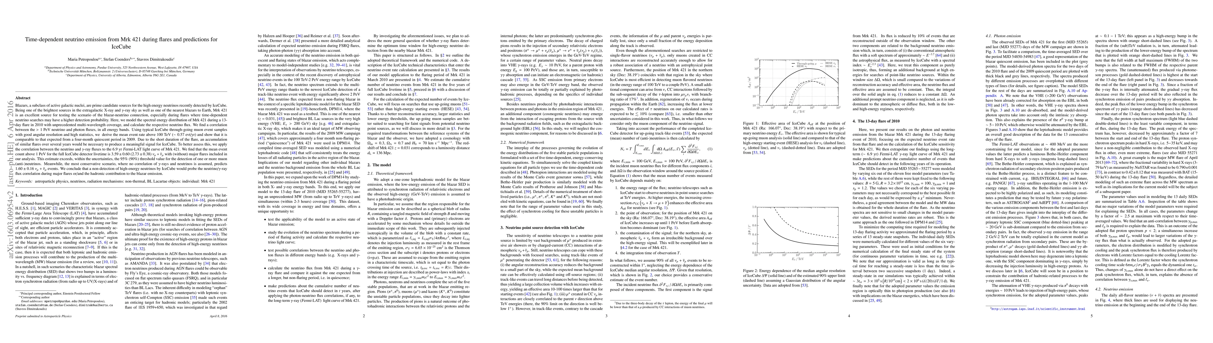 Researchers modeled Mrk 421's spectral energy distribution during a 13-day flare, predicting high-energy neutrino fluxes that could be detected by IceCube, but may require accumulation of similar flares to produce a meaningful signal.