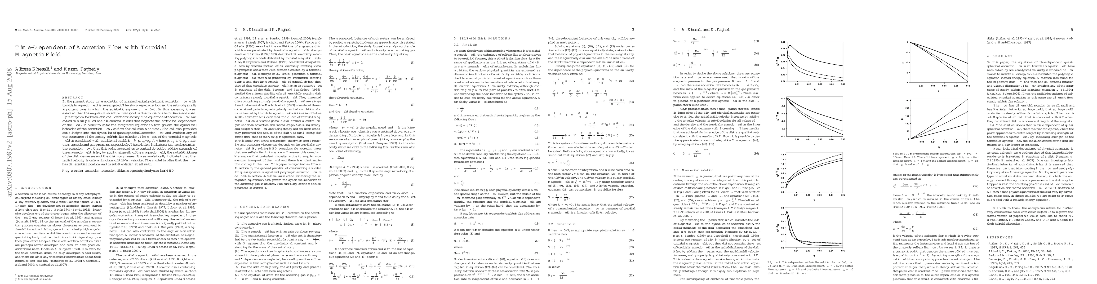 This study investigates the time evolution of quasi-spherical polytropic accretion flows with a toroidal magnetic field, focusing on the case where the adiabatic exponent is $\gamma=5/3$. The model employs an $\alpha$-prescription for viscosity and a simplified one-dimensional self-similar solution to explore the dynamics, revealing a transonic point that moves closer to the central object as magnetic field strength increases, compressing the disk.