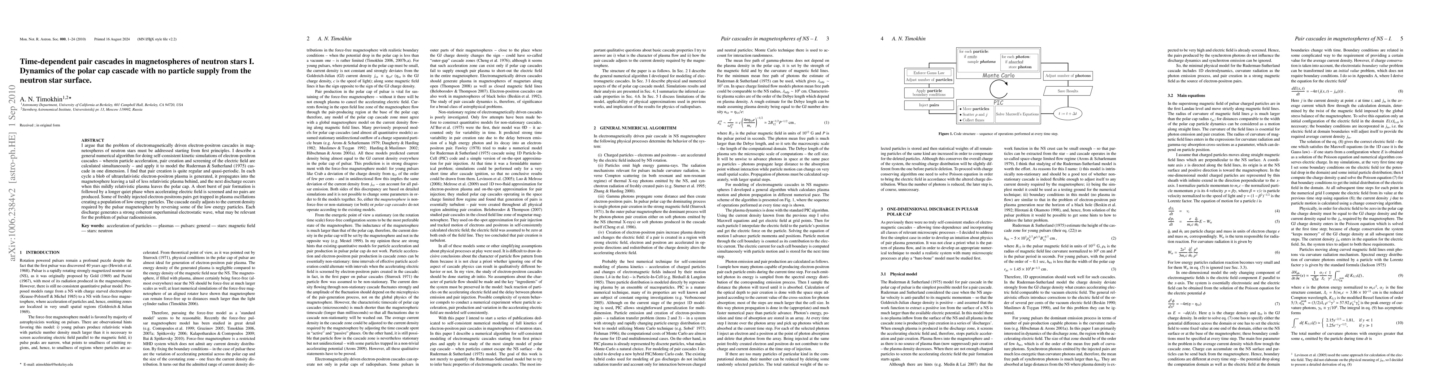 I argue that the problem of electromagnetically driven electron-positron cascades in magnetospheres of neutron stars must be addressed starting from first principles. I describe a general numerical algorithm for doing self-consistent kinetic simulations of electron-positron cascades - wherein particle acceleration, pair creation and screening of the electric field are calculated simultaneously - and apply it to model the Ruderman and Sutherland cascade in one dimension. I find that pair creation is quite regular and quasi-periodic. In each cycle a blob of ultrarelativistic electron-positron plasma is generated, it propagates into the magnetosphere leaving a tail of less relativistic plasma behind, and the next discharge occurs when this mildly relativistic plasma leaves the polar cap. A short burst of pair formation is followed by a longer quiet phase when accelerating electric field is screened and no pairs are produced. Some of freshly injected electron-positrons pairs get trapped in plasma oscillations creating a population of low energy particles. The cascade easily adjusts to the current density required by the pulsar magnetosphere by reversing some of the low energy particles. Each discharge generates a strong coherent superluminal electrostatic wave, which may be relevant for the problem of pulsar radioemission.
