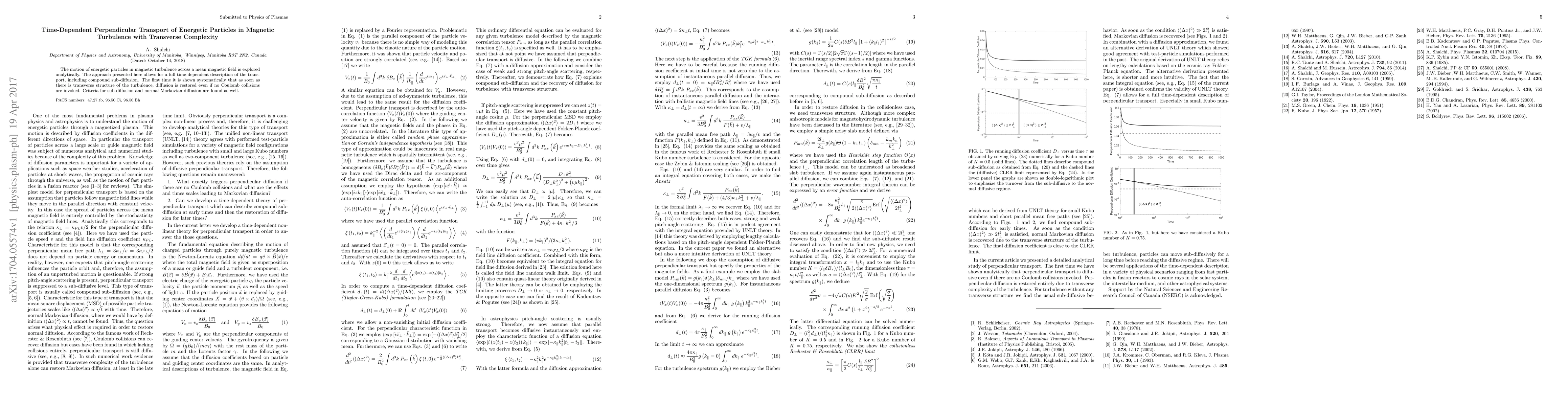 This paper analytically investigates the time-dependent perpendicular transport of energetic particles in magnetic turbulence, revealing that transverse turbulence structure can restore diffusion without Coulomb collisions. Criteria for sub-diffusion and normal diffusion are identified.