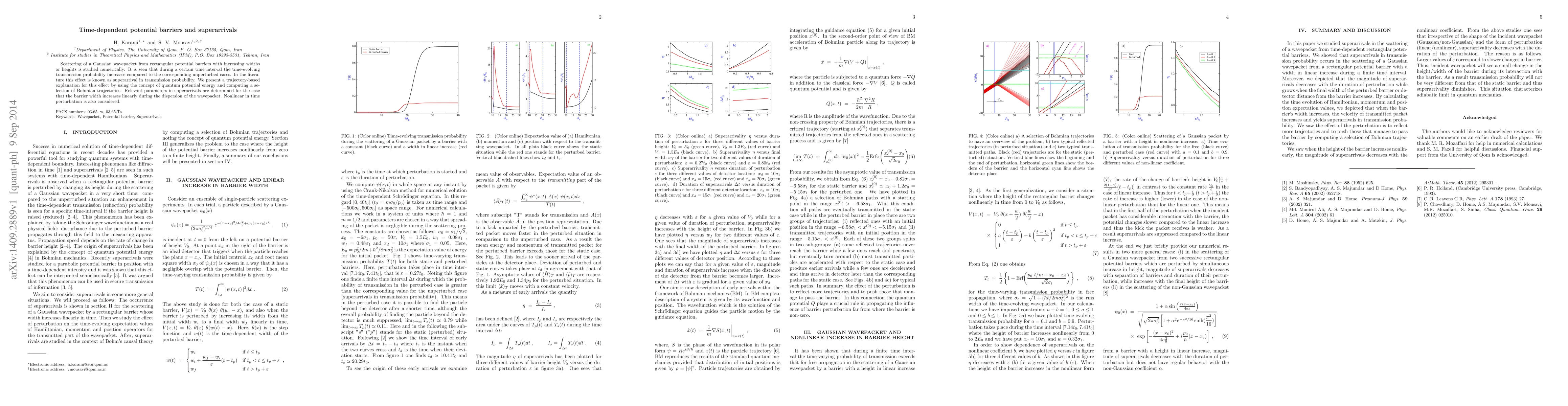 This paper investigates the phenomenon of superarrivals in quantum scattering, where transmission probability increases over time for Gaussian wavepackets encountering growing potential barriers. The authors provide a trajectory-based explanation using Bohmian quantum mechanics and determine relevant parameters for both linear and nonlinear time-dependent perturbations.