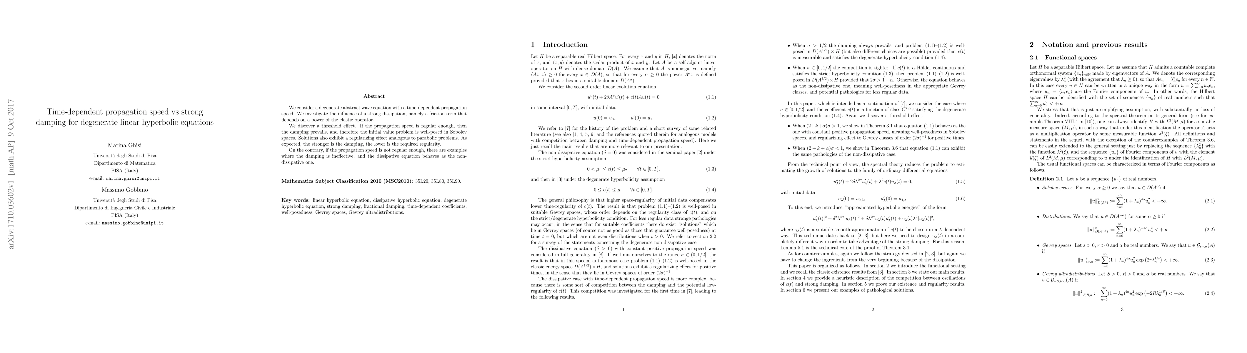 This paper examines a degenerate wave equation with a time-dependent propagation speed and investigates the impact of strong damping. It finds a threshold effect: sufficient regularity in the propagation speed allows for effective damping, ensuring well-posedness and regularization, while insufficient regularity can render damping ineffective.