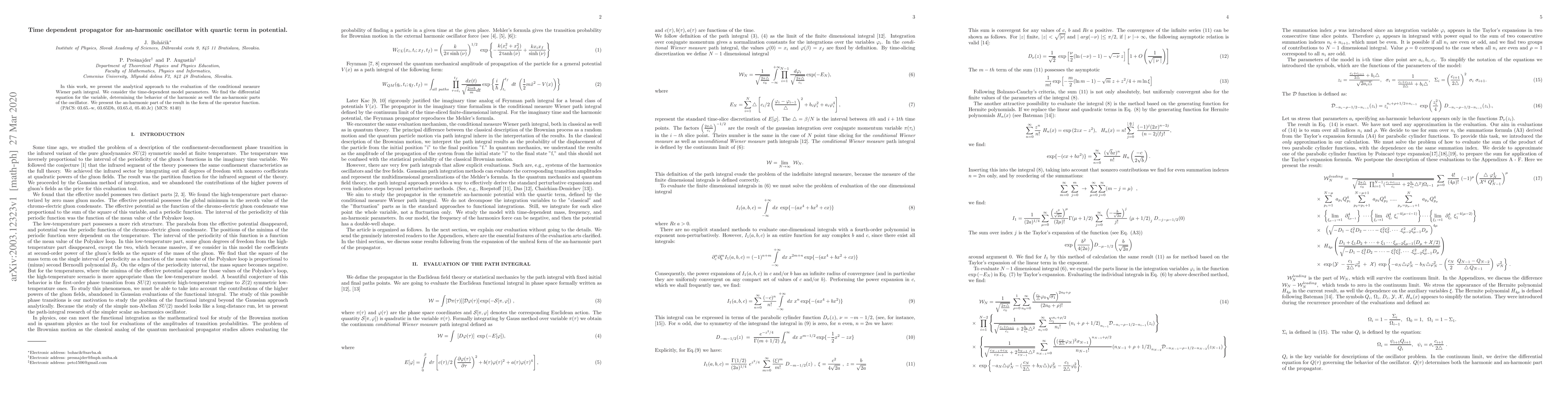 In this work, we present the analytical approach to the evaluation of the conditional measure Wiener path integral. We consider the time-dependent model parameters. We find the differential equation for the variable, determining the behavior of the harmonic as well the an-harmonic parts of the oscillator. We present the an-harmonic part of the result in the form of the operator function.