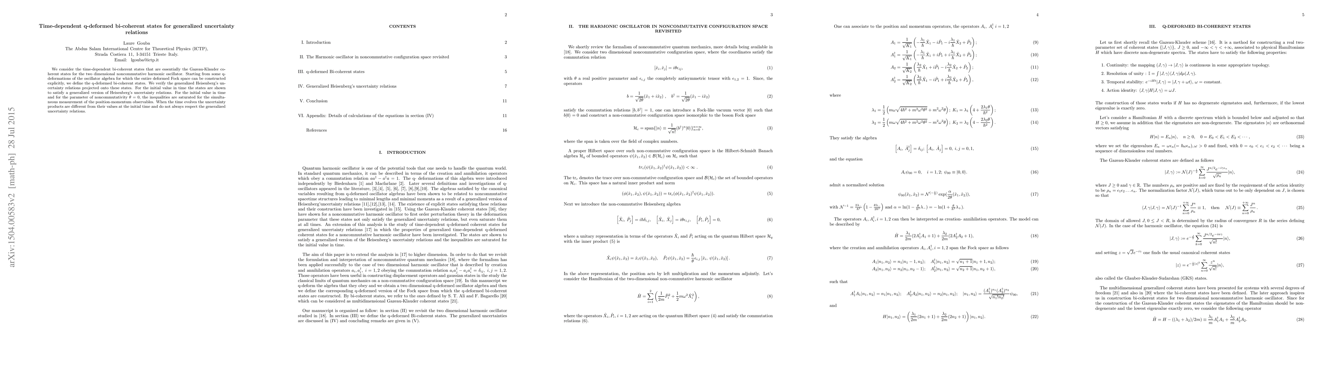 This paper explores time-dependent q-deformed bi-coherent states for a two-dimensional noncommutative harmonic oscillator, verifying generalized uncertainty relations for these states. It finds that while initial states satisfy a generalized uncertainty relation, evolving time alters the uncertainty products, sometimes violating these relations.