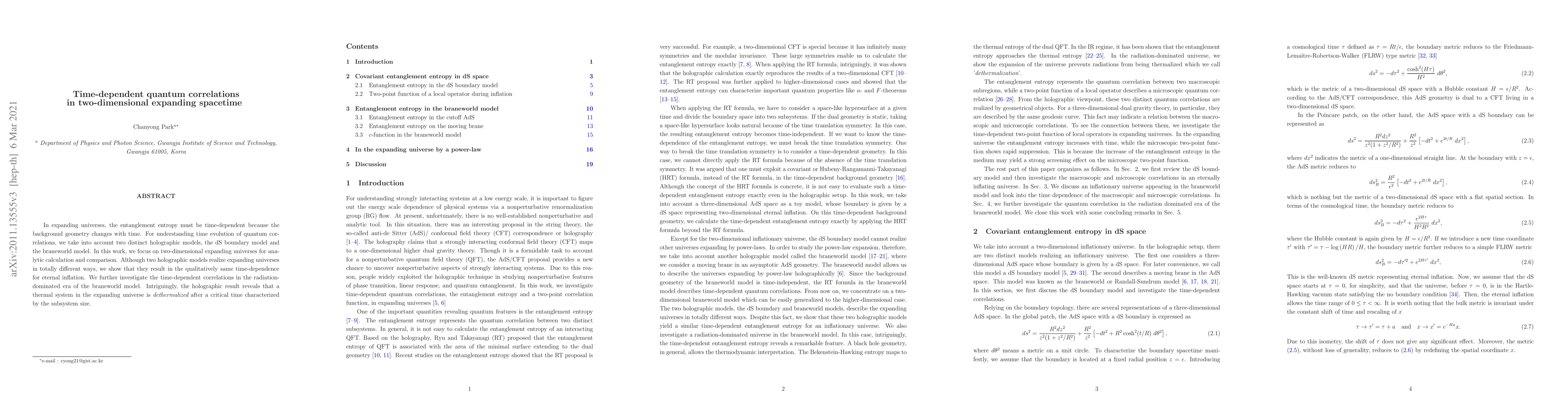 Researchers study time-dependent quantum correlations in expanding universes using two holographic models, finding that they result in qualitatively similar time-dependence for eternal inflation.