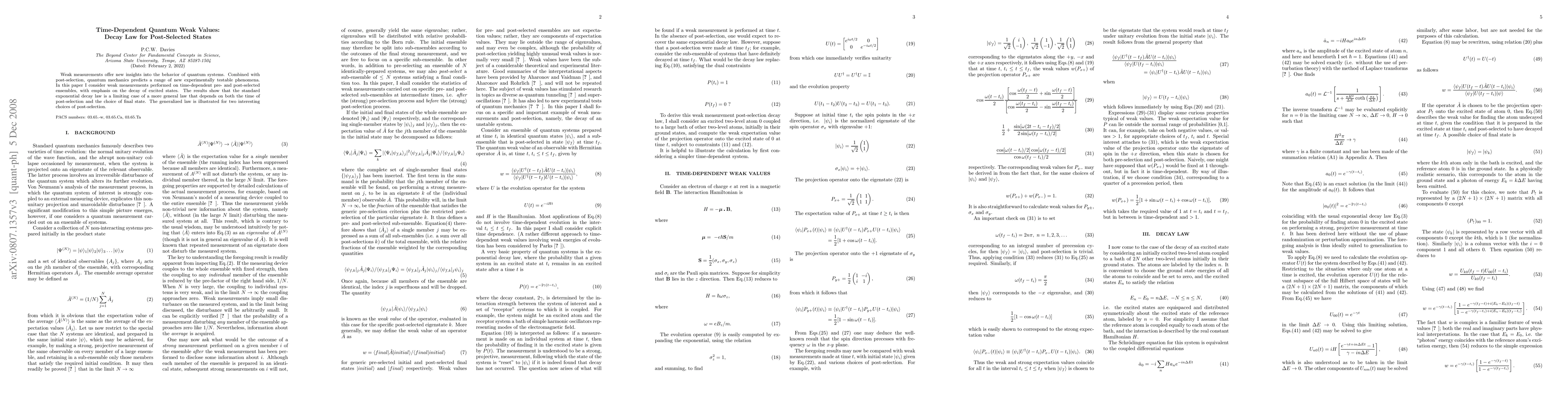 Weak measurements offer new insights into the behavior of quantum systems. Combined with post-selection, quantum mechanics predicts a range of new experimentally testable phenomena. In this paper I consider weak measurements performed on time-dependent pre- and post-selected ensembles, with emphasis on the decay of excited states. The results show that the standard exponential decay law is a limiting case of a more general law that depends on both the time of post-selection and the choice of final state. The generalized law is illustrated for two interesting choices of post-selection.