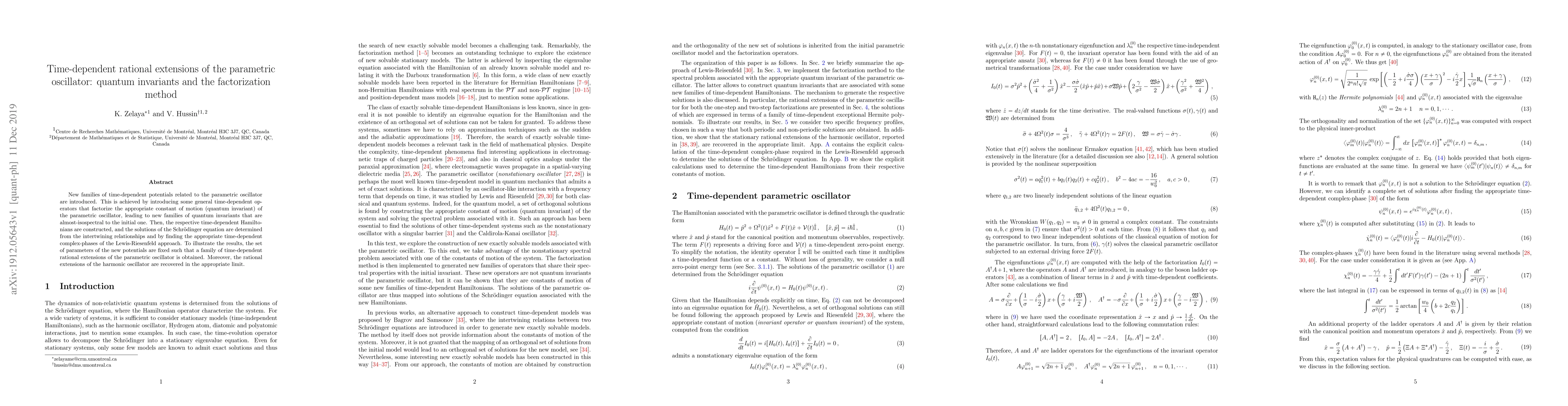 New families of time-dependent potentials related to the parametric oscillator are introduced. This is achieved by introducing some general time-dependent operators that factorize the appropriate constant of motion (quantum invariant) of the parametric oscillator, leading to new families of quantum invariants that are almost-isospectral to the initial one. Then, the respective time-dependent Hamiltonians are constructed, and the solutions of the Schr\"odinger equation are determined from the intertwining relationships and by finding the appropriate time-dependent complex-phases of the Lewis-Riesenfeld approach. To illustrate the results, the set of parameters of the new potentials are fixed such that a family of time-dependent rational extensions of the parametric oscillator is obtained. Moreover, the rational extensions of the harmonic oscillator are recovered in the appropriate limit.