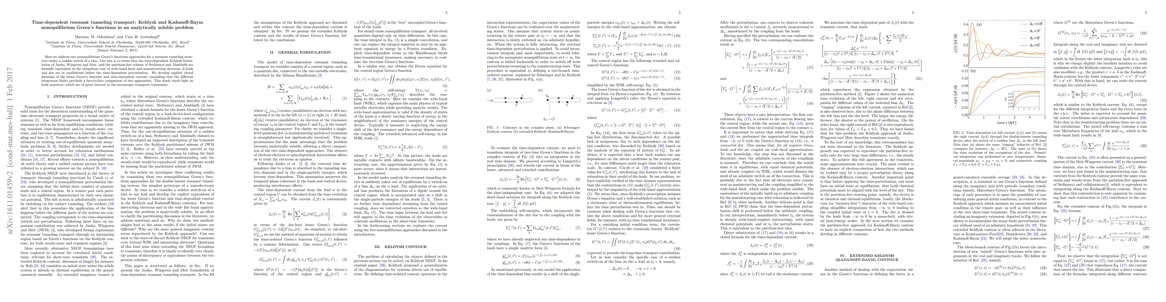 This paper compares two nonequilibrium Green's functions approaches for analyzing resonant tunneling in a sudden bias switch scenario, demonstrating their formal equivalence under wide-band limit and noninteracting electron conditions. It provides explicit formulas for the lesser Green's function and time-dependent current, highlighting the differences in integration limits between the methods.