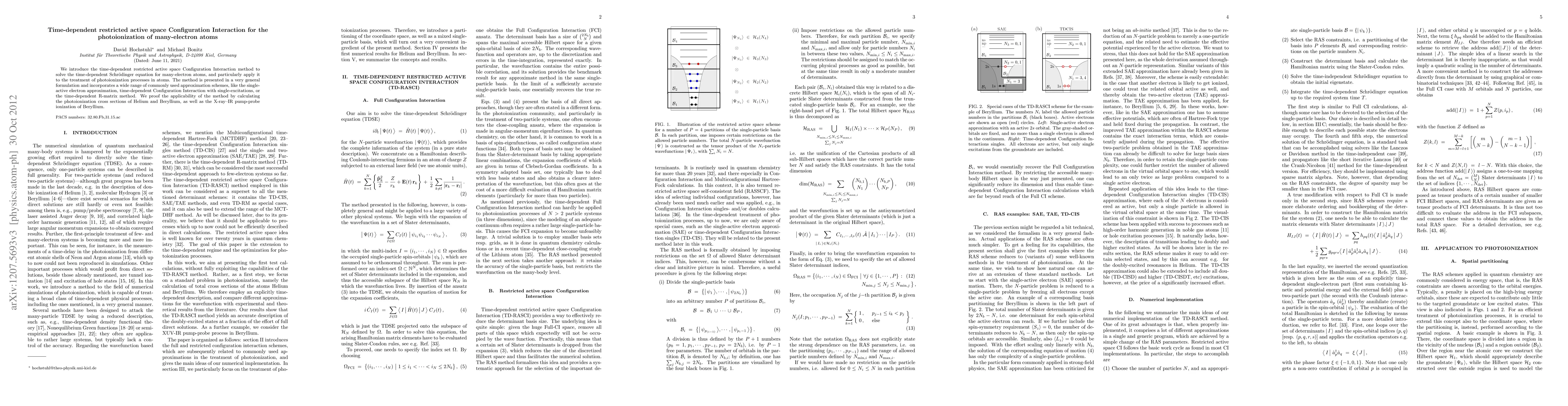 This paper introduces a time-dependent restricted active space Configuration Interaction method to solve the time-dependent Schrödinger equation for many-electron atoms, focusing on photoionization processes. The method is demonstrated through calculations of photoionization cross sections for Helium and Beryllium, and X-ray-IR pump-probe ionization in Beryllium.