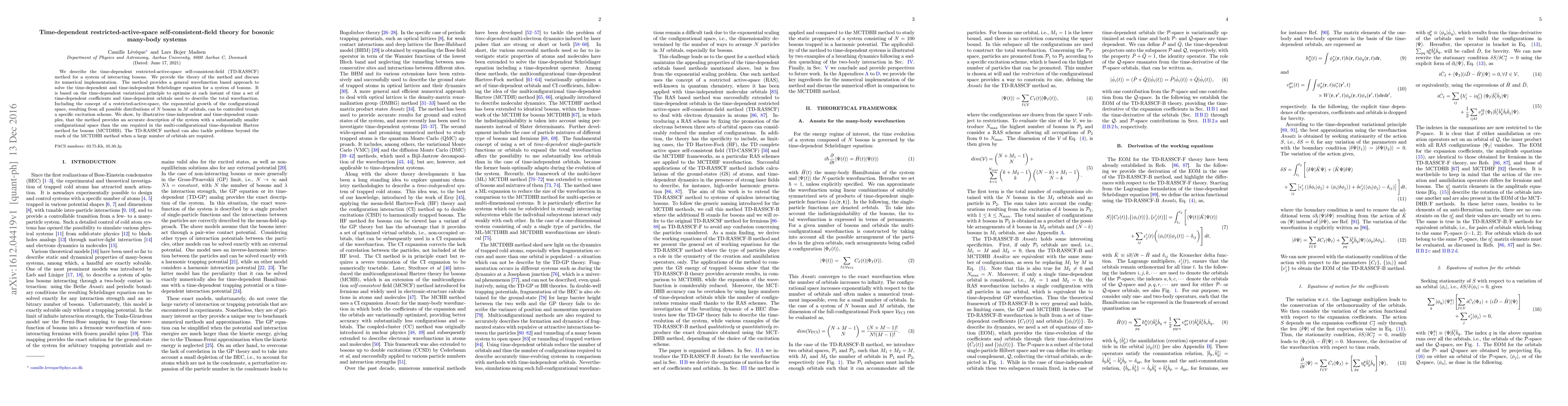 The paper introduces the TD-RASSCF method for solving the time-dependent and time-independent Schrödinger equation in bosonic many-body systems, offering a controlled approach to manage the exponential growth of configurational space. The method demonstrates accuracy and efficiency compared to the MCTDHB method, especially for large orbital systems.