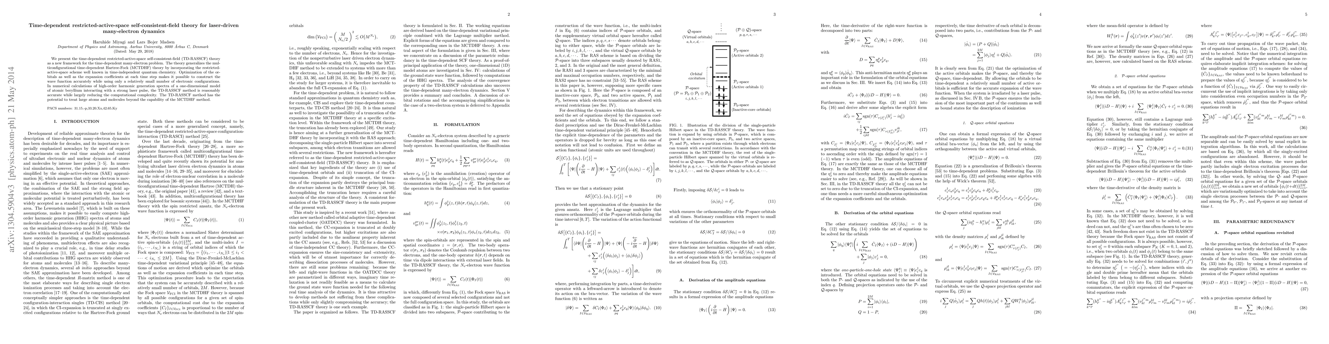 The paper introduces the time-dependent restricted-active-space self-consistent field (TD-RASSCF) theory for laser-driven many-electron dynamics, which generalizes the MCTDHF method by incorporating the restricted-active-space scheme. The TD-RASSCF method is shown to be accurate and computationally efficient for high-order harmonic generation in laser-driven atomic beryllium.