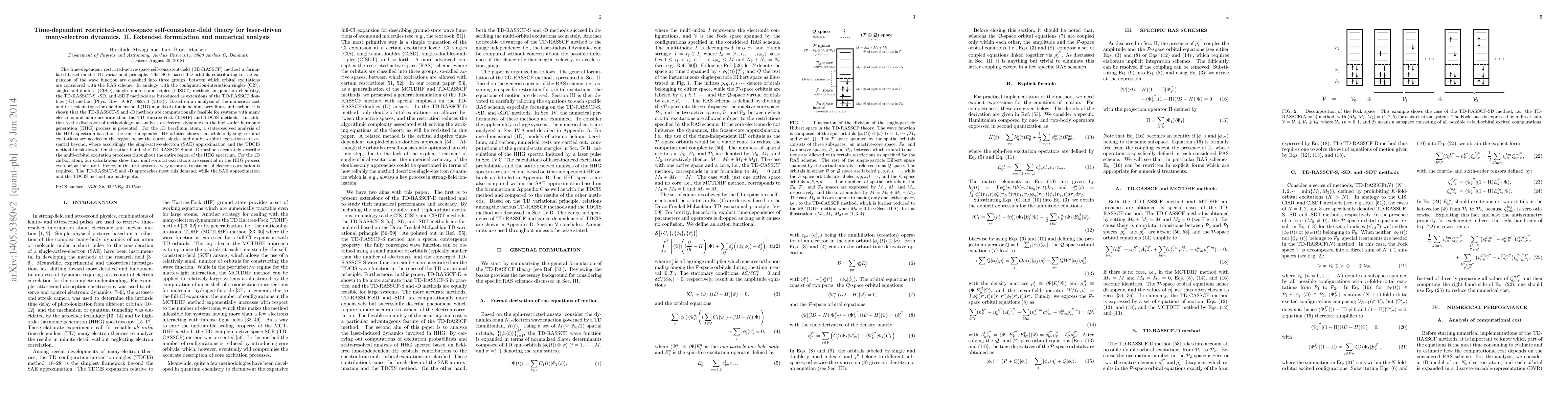 The time-dependent restricted-active-space self-consistent-field (TD-RASSCF) method is formulated based on the TD variational principle. In analogy with the configuration-interaction singles (CIS), singles-and-doubles (CISD), singles-doubles-and-triples (CISDT) methods in quantum chemistry, the TD-RASSCF-S, -SD, and -SDT methods are introduced as extensions of the TD-RASSCF dou- bles (-D) method [Phys. Rev. A 87, 062511 (2013)]. Based on an analysis of the numerical cost and test calculations for one-dimensional (1D) models of atomic helium, beryllium, and carbon, it is shown that the TD-RASSCF-S and -D methods are computationally feasible for systems with many electrons and more accurate than the TD Hartree-Fock (TDHF) and TDCIS methods. In addition to the discussion of methodology, an analysis of electron dynamics in the high-order harmonic generation (HHG) process is presented. For the 1D beryllium atom, a state-resolved analysis of the HHG spectrum based on the time-independent HF orbitals shows that while only single-orbital excitations are needed in the region below the cutoff, single- and double-orbital excitations are es- sential beyond, where accordingly the single-active-electron (SAE) approximation and the TDCIS method break down. On the other hand, the TD-RASSCF-S and -D methods accurately describe the multi-orbital excitation processes throughout the entire region of the HHG spectrum. For the 1D carbon atom, our calculations show that multi-orbital excitations are essential in the HHG process even below the cutoff. Hence, in this test system a very accurate treatment of electron correlation is required. The TD-RASSCF-S and -D approaches meet this demand, while the SAE approximation and the TDCIS method are inadequate.