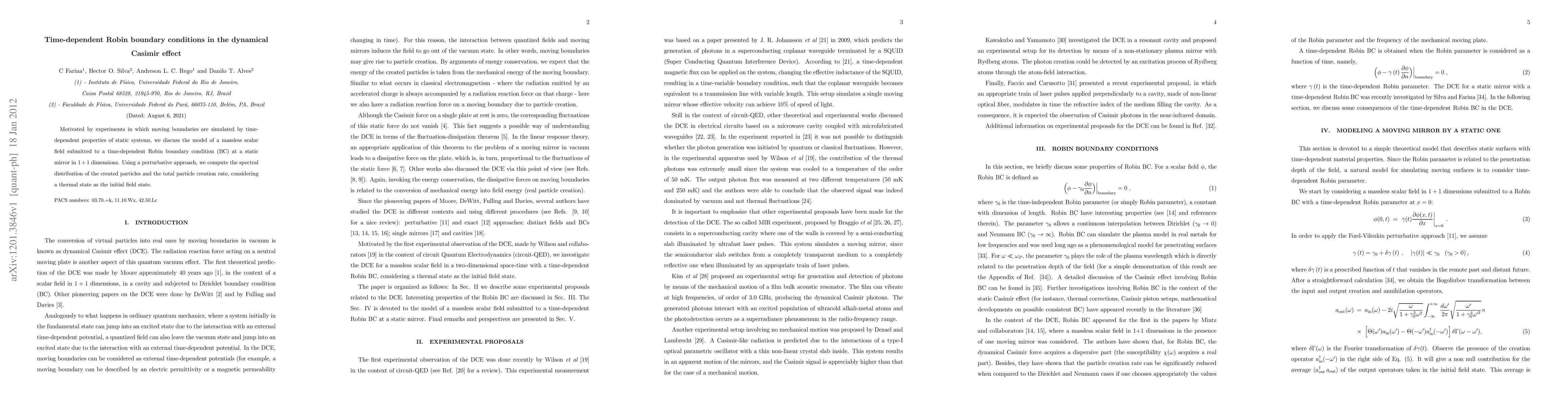 Motivated by experiments in which moving boundaries are simulated by time-dependent properties of static systems, we discuss the model of a massless scalar field submitted to a time-dependent Robin boundary condition (BC) at a static mirror in 1+1 dimensions. Using a perturbative approach, we compute the spectral distribution of the created particles and the total particle creation rate, considering a thermal state as the initial field state.