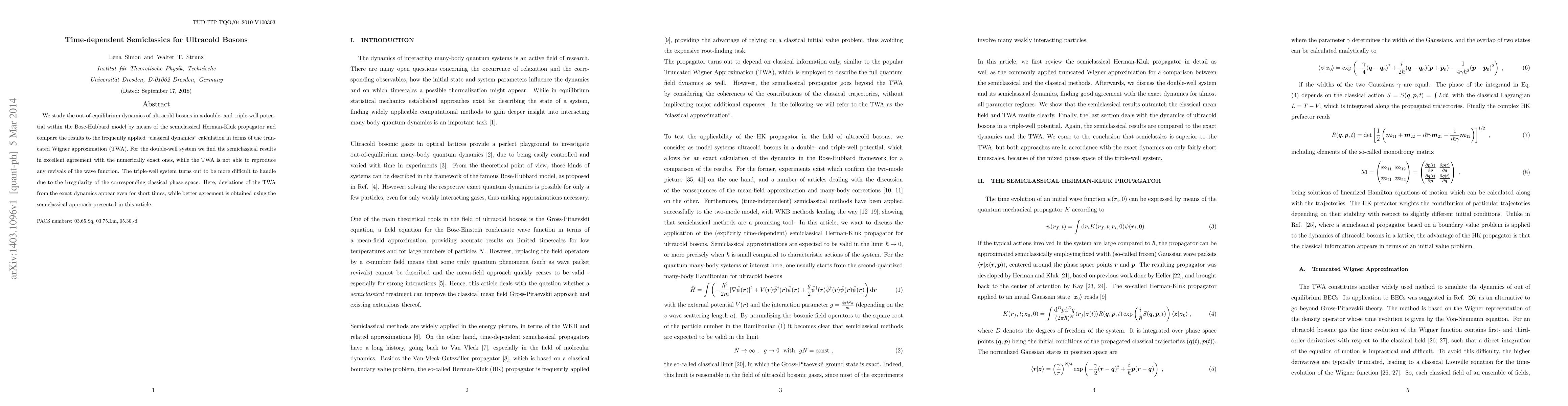 Researchers studied the dynamics of ultracold bosons in a double- and triple-well potential using two methods, finding excellent agreement between the semiclassical approach and exact results for the double-well system, while the classical dynamics method struggled to reproduce wave function revivals.