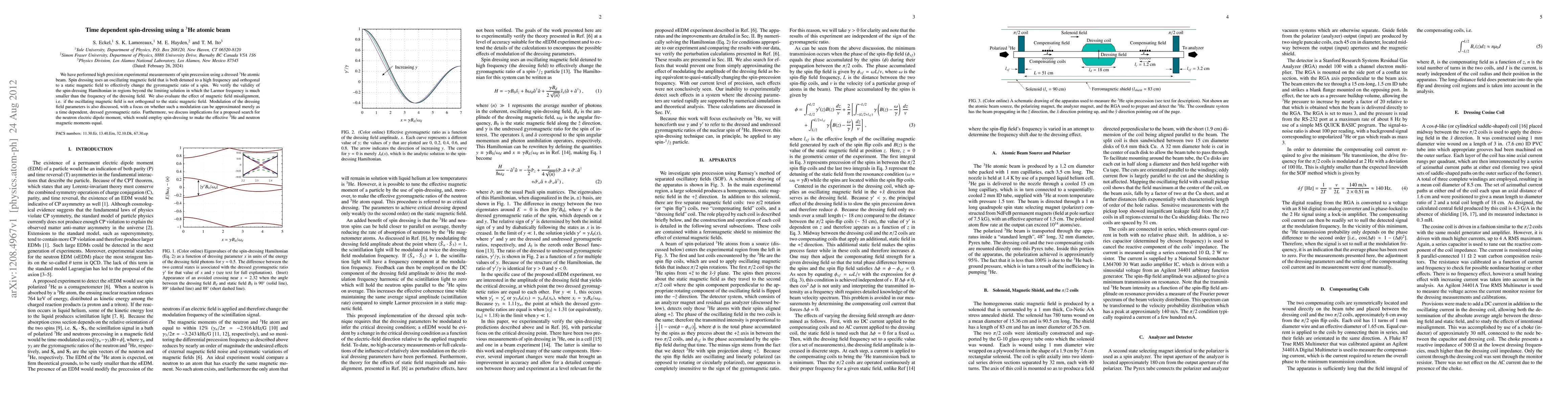 We have performed high precision experimental measurements of spin precession using a dressed $^3$He atomic beam. Spin-dressing uses an oscillating magnetic field detuned to high frequency which is orthogonal to a static magnetic field to effectively change the gyromagnetic ratio of a spin. We verify the validity of the spin-dressing Hamiltonian in regions beyond the limiting solution in which the Larmor frequency is much smaller than the frequency of the dressing field. We also evaluate the effect of magnetic field misalignment, e.g. if the oscillating magnetic field is not orthogonal to the static magnetic field. Modulation of the dressing field parameters is also discussed, with a focus on whether such a modulation can be approximated merely as a time dependent, dressed gyromagnetic ratio. Furthermore, we discuss implications for a proposed search for the neutron electric dipole moment, which would employ spin-dressing to make the effective $^3$He and neutron magnetic moments equal.