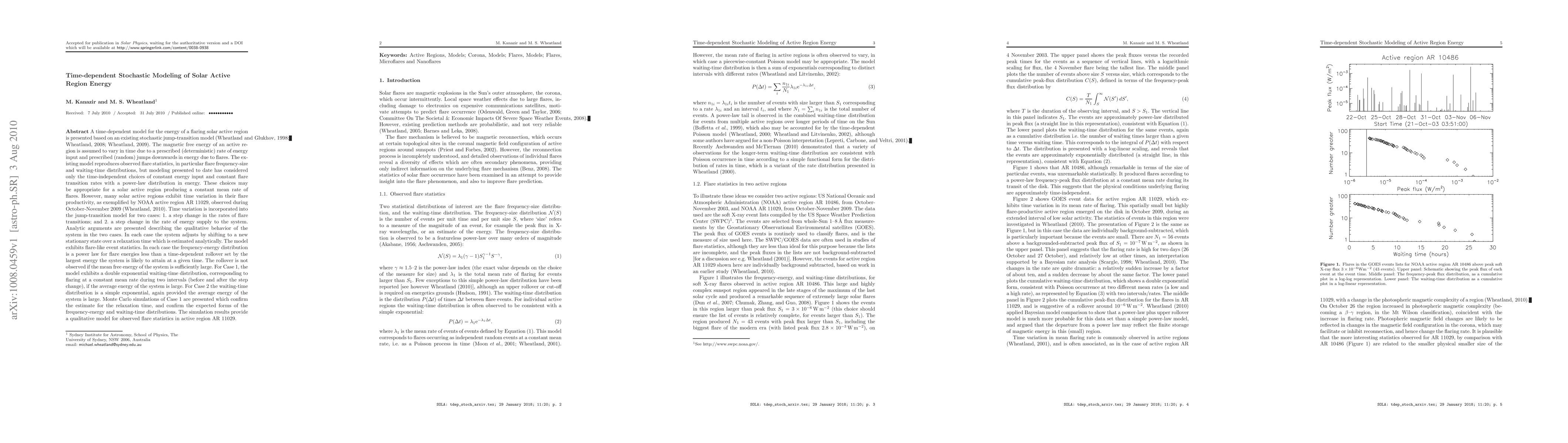 This paper presents a time-dependent stochastic model for solar active region energy, incorporating variable rates of flare jumps and energy supply. The model adjusts to changes by shifting to a new stationary state, with analytic estimates of relaxation times and power-law frequency-energy distributions.