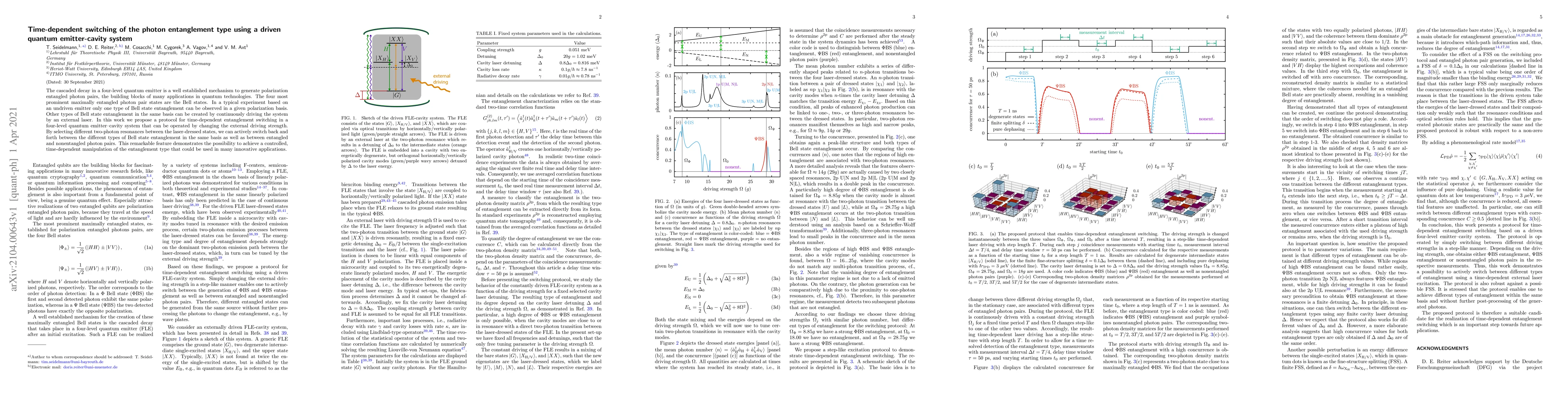 This paper proposes a protocol for time-dependent switching of photon entanglement types in a driven quantum emitter-cavity system, enabling the controlled transition between different Bell state entanglements and nonentangled photon pairs by adjusting the external driving strength. This capability could significantly advance quantum technologies.
