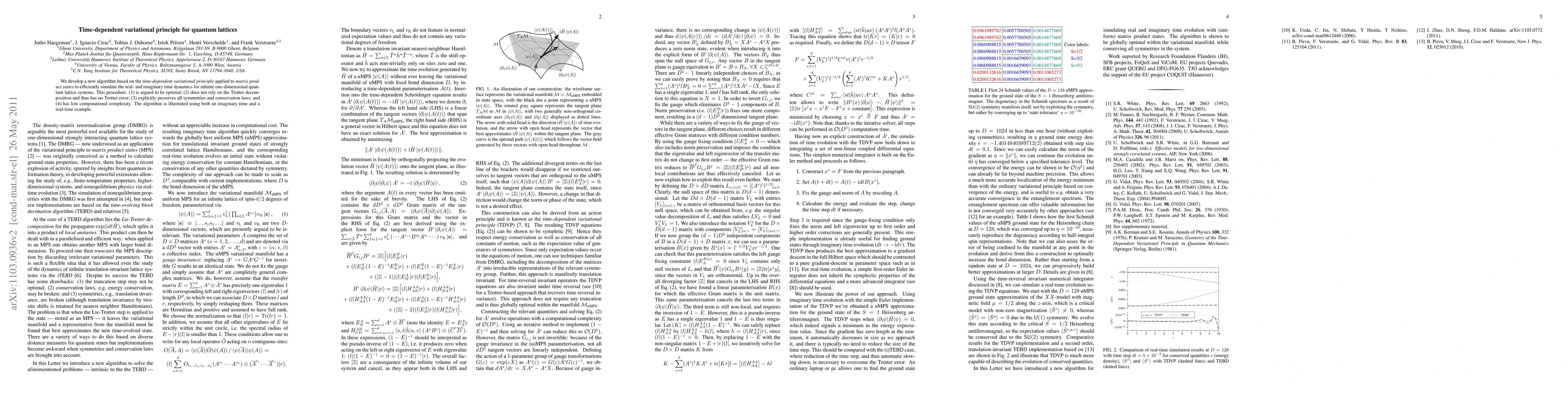 The introduction of a time-dependent variational principle algorithm for MPS that efficiently simulates quantum lattice systems without Trotter errors and with symmetry preservation.