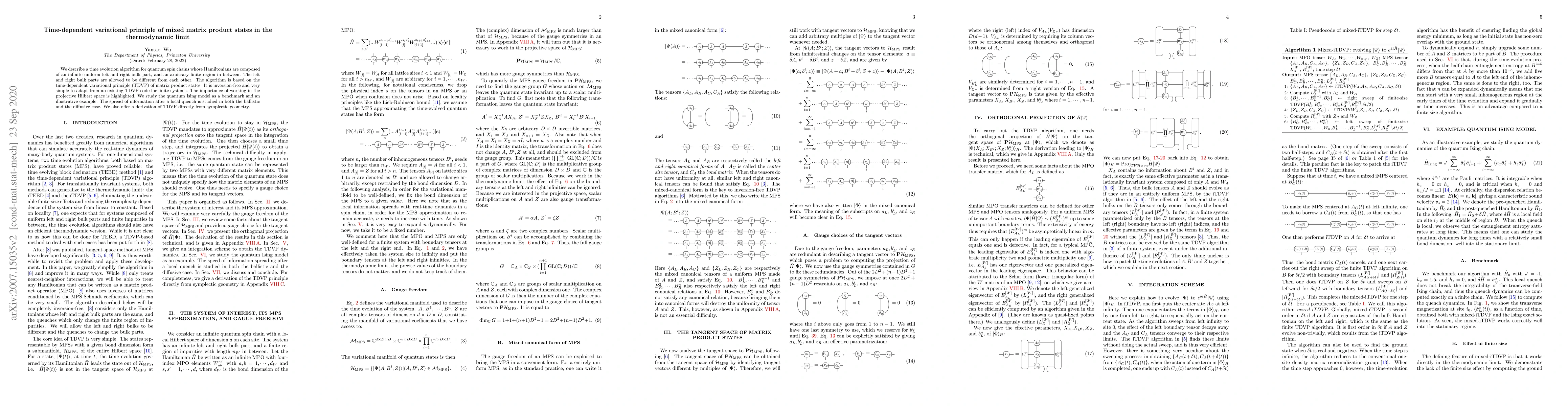 This paper presents an inversion-free time evolution algorithm for quantum spin chains based on the time-dependent variational principle (TDVP) of matrix product states, applicable to systems with different left and right bulk parts. The algorithm is demonstrated using the quantum Ising model, analyzing information spread post-quench in both ballistic and diffusive regimes.
