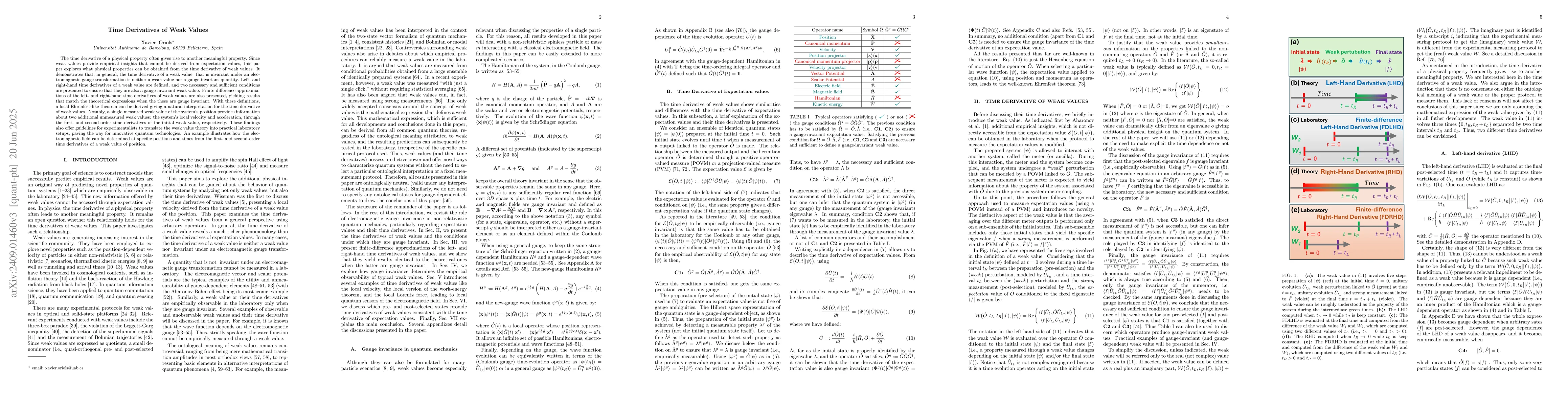 The time derivative of a physical property often gives rise to another meaningful property. Since weak values provide empirical insights that cannot be derived from expectation values, this paper explores what physical properties can be obtained from the time derivative of weak values. It demonstrates that, in general, the time derivative of a gauge-invariant weak value is neither a weak value nor a gauge-invariant quantity. Two conditions are presented to ensure that the left- or right-time derivative of a weak value is also a gauge-invariant weak value. Under these conditions, a local Ehrenfest-like theorem can be derived for weak values giving a natural interpretation for the time derivative of weak values. Notably, a single measured weak value of the system's position provides information about two additional unmeasured weak values: the system's local velocity and acceleration, through the first- and second-order time derivatives of the initial weak value, respectively. These findings also offer guidelines for experimentalists to translate the weak value theory into practical laboratory setups, paving the way for innovative quantum technologies. An example illustrates how the electromagnetic field can be determined at specific positions and times from the first- and second-order time derivatives of a weak value of position.