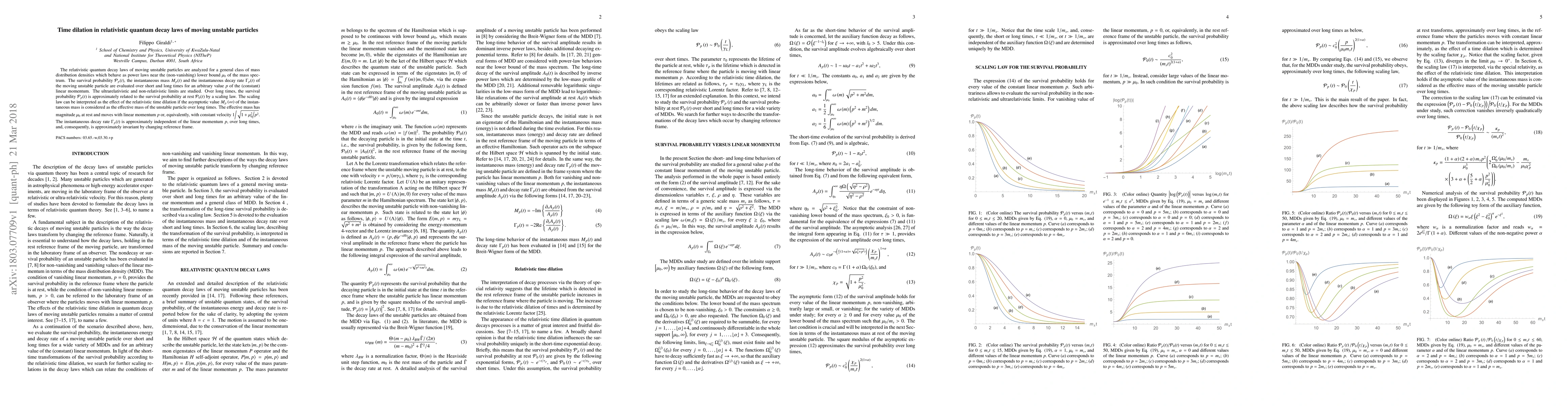 The paper presents a detailed analysis of relativistic quantum decay laws, demonstrating how the survival probability and decay rate of moving unstable particles transform under relativistic time dilation.