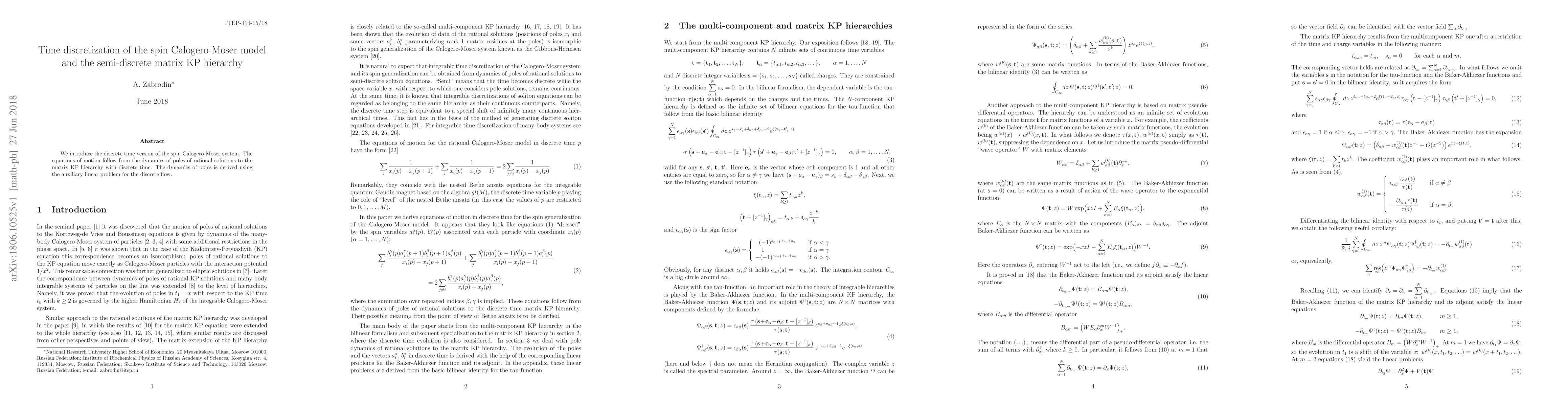 Summary: This paper introduces the discrete time version of the spin Calogero-Moser system, deriving its equations of motion from the dynamics of poles of rational solutions to the semi-discrete matrix KP hierarchy, utilizing an auxiliary linear problem for the discrete flow.