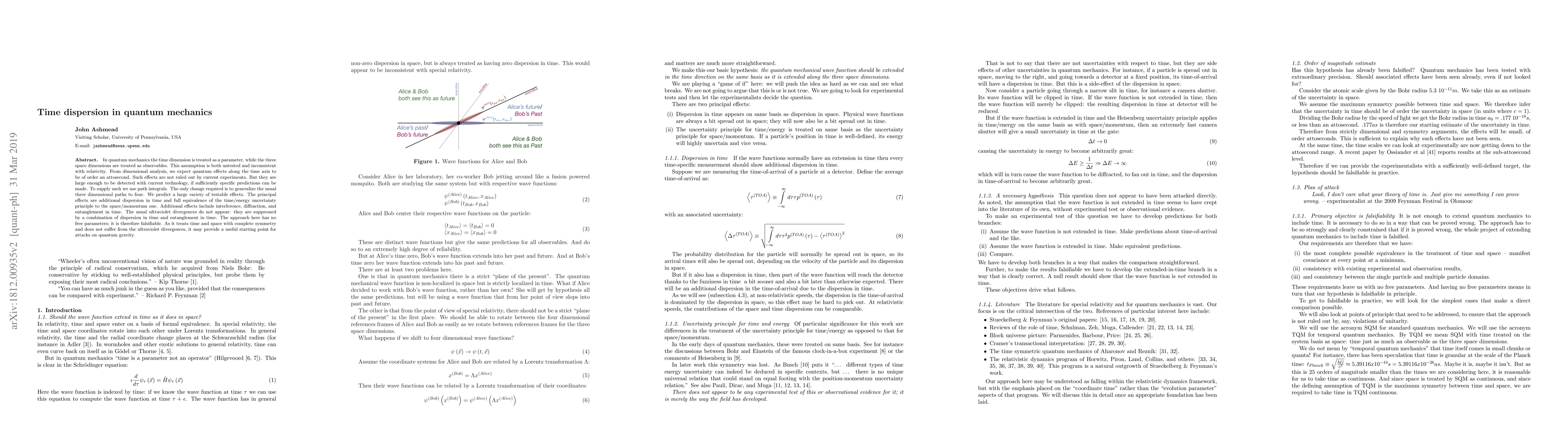This paper proposes a new approach to quantum mechanics that predicts additional dispersion in time and equivalence of the time/energy uncertainty principle with the space/momentum one. It offers a falsifiable framework for detecting such effects with current technology.