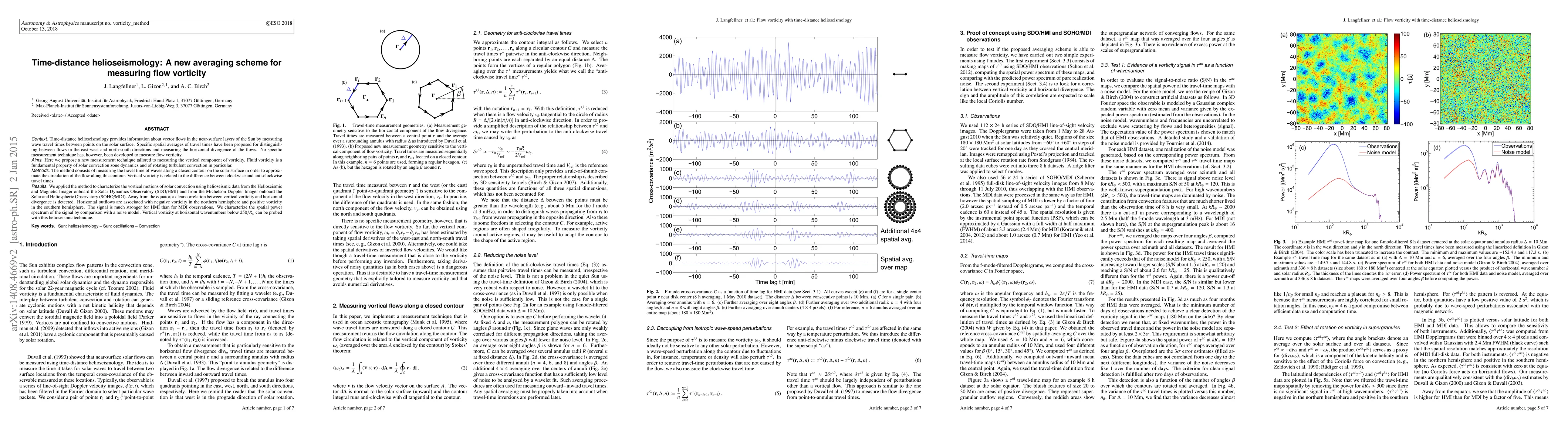 Time-distance helioseismology provides information about vector flows in the near-surface layers of the Sun by measuring wave travel times between points on the solar surface. Specific spatial averages of travel times have been proposed for distinguishing between flows in the east-west and north-south directions and measuring the horizontal divergence of the flows. No specific measurement technique has, however, been developed to measure flow vorticity. Here we propose a new measurement technique tailored to measuring the vertical component of vorticity. Fluid vorticity is a fundamental property of solar convection zone dynamics and of rotating turbulent convection in particular. The method consists of measuring the travel time of waves along a closed contour on the solar surface in order to approximate the circulation of the flow along this contour. Vertical vorticity is related to the difference between clockwise and counter-clockwise travel times. We applied the method to characterize the vortical motions of solar convection using helioseismic data from the Helioseismic and Magnetic Imager onboard the Solar Dynamics Observatory (SDO/HMI) and from the Michelson Doppler Imager onboard the Solar and Heliospheric Observatory (SOHO/MDI). Away from the equator, a clear correlation between vertical vorticity and horizontal divergence is detected. Horizontal outflows are associated with negative vorticity in the northern hemisphere and positive vorticity in the southern hemisphere. The signal is much stronger for HMI than for MDI observations. We characterize the spatial power spectrum of the signal by comparison with a noise model. Vertical vorticity at horizontal wavenumbers below 250/R_Sun can be probed with this helioseismic technique.