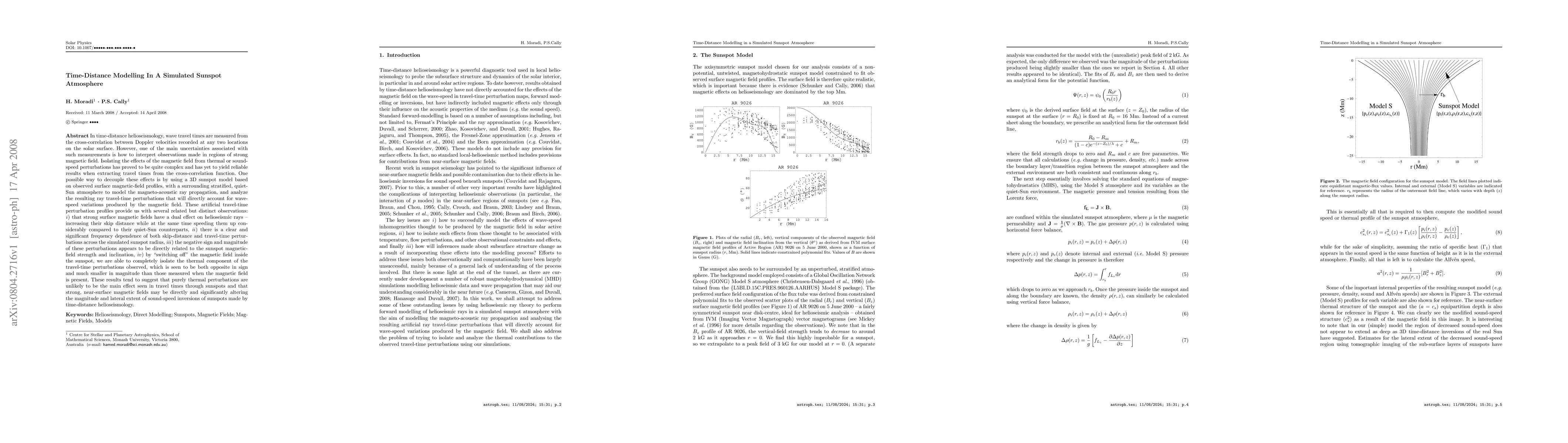 One of the main uncertainties associated with time-distance measurements is how to interpret observations made in regions of strong magnetic field as isolating the effects of the magnetic field from thermal or sound-speed perturbations has proved to be quite complex. One possible way to decouple these effects is by using a 3D sunspot model, with a surrounding stratified, quiet-Sun atmosphere to model the magneto-acoustic ray propagation, and analyze the resulting ray travel-time perturbations that will directly account for the magnetic field. These artificial travel-time perturbation profiles have provided us with several related but distinct observations: i) that strong surface magnetic fields have a dual effect on helioseismic rays -- increasing their skip distance while at the same time speeding them up considerably compared to their quiet-Sun counterparts, ii) there is a clear and significant frequency dependence of both skip-distance and travel-time perturbations across the simulated sunspot radius, iii) the negative sign and magnitude of these perturbations appears to be directly related to the sunspot magnetic-field strength and inclination, iv) by ``switching off'' the magnetic field inside the sunspot, we are able to completely isolate the thermal component of the travel-time perturbations observed, which is seen to be both opposite in sign and much smaller in magnitude than those measured when the magnetic field is present. These results tend to suggest that purely thermal perturbations are unlikely to be the main effect seen in travel times through sunspots and that strong, near-surface magnetic fields may be directly and significantly altering the magnitude and lateral extent of sound-speed inversions of sunspots made by time-distance helioseismology.